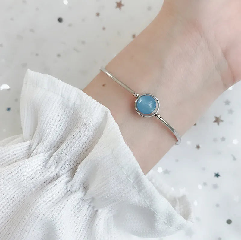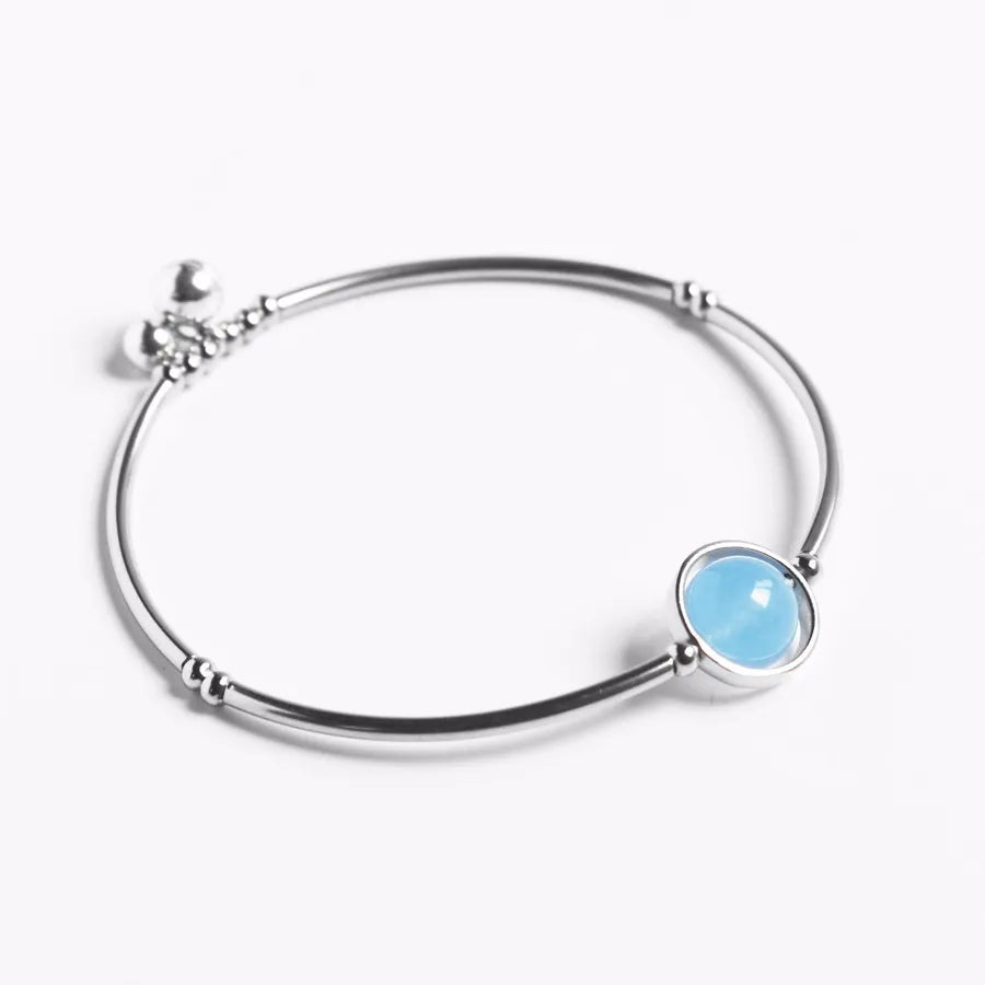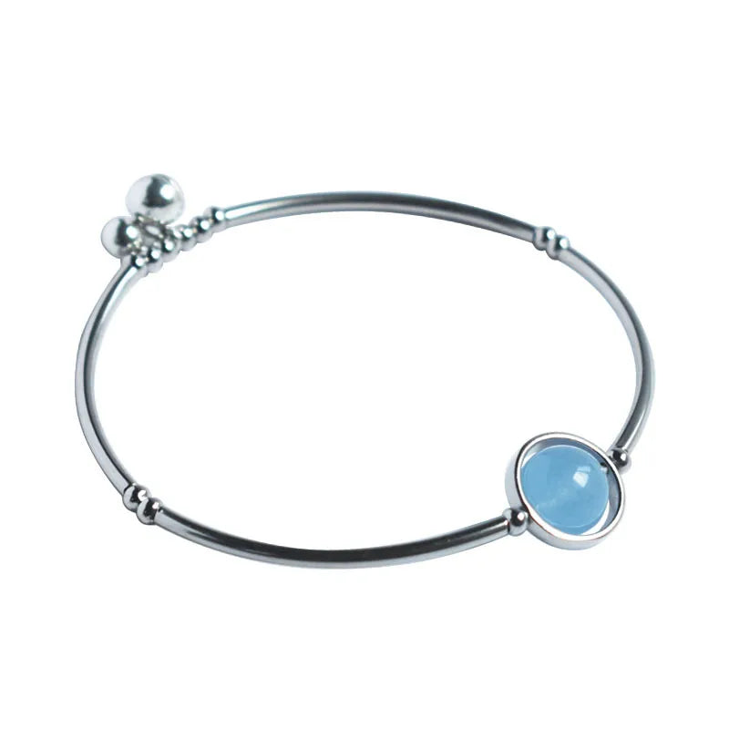 Elevate your accessory game with this elegant Sterling Silver Blue Crystal Bell Bracelet. Crafted from high-quality 925 sterling silver and adorned with a shimmering blue crystal, this bracelet adds a touch of charm and sophistication to any outfit. The platinum plating enhances its shine and durability, while the geometric design and delicate bell accent create a playful yet refined look. Lightweight and comfortable, it’s perfect for everyday wear or special occasions. Whether you're dressing up or down, this bracelet is a timeless piece that complements your unique style effortlessly.