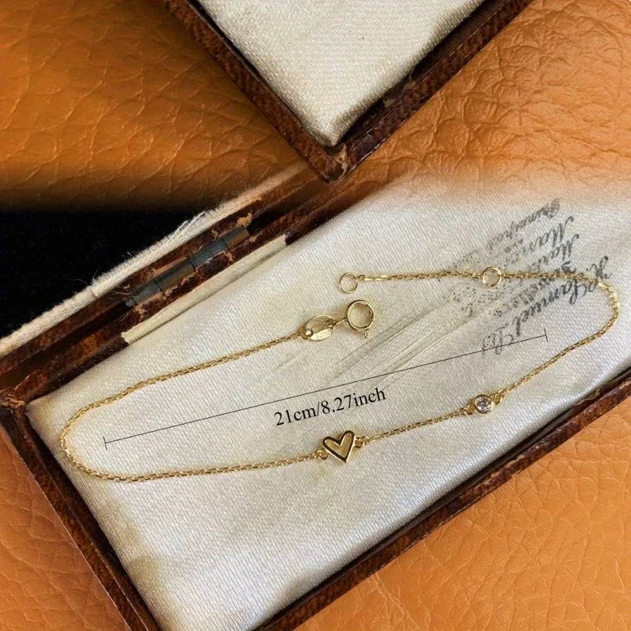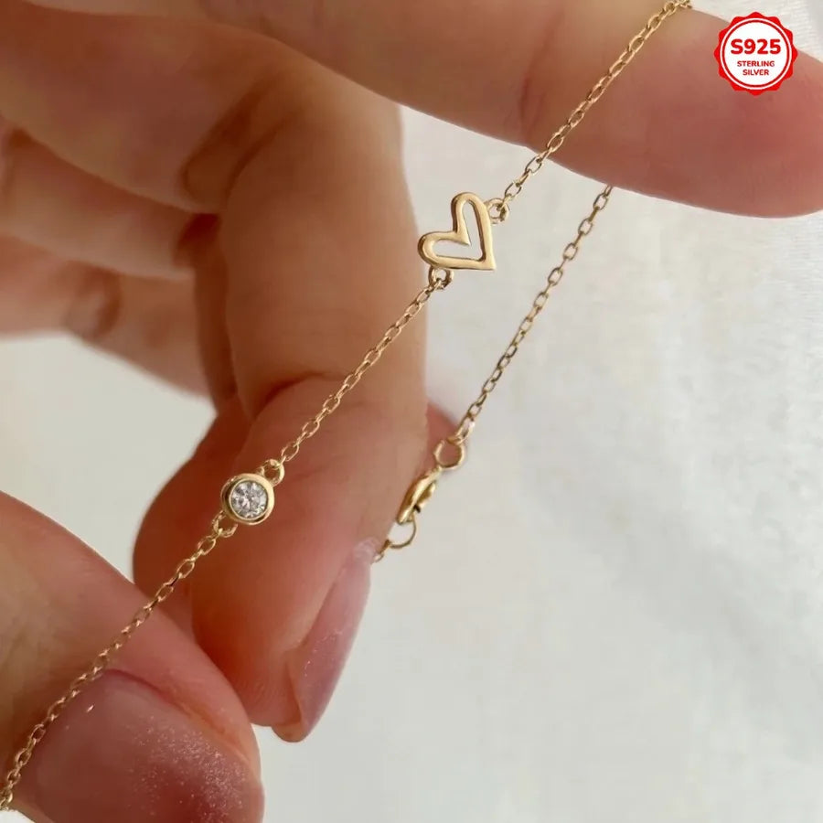 Elevate your everyday look with this elegant sterling silver bracelet, featuring a delicate heart-shaped pendant and a single sparkling zircon stone. Crafted from premium 925 sterling silver and plated in real gold, this bracelet offers a luxurious yet minimalist design perfect for daily wear. The sweet and simple style adds a romantic touch to any outfit, making it an ideal accessory for casual outings or special moments. Lightweight and comfortable, it’s designed to be worn alone or stacked with other pieces. A timeless gift for yourself or someone special, this bracelet radiates charm and sophistication.