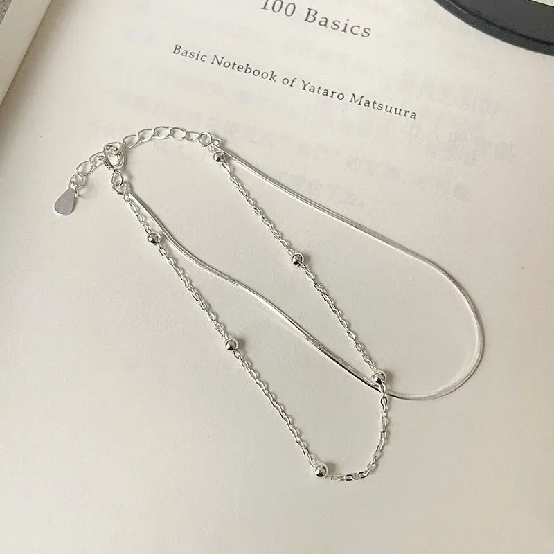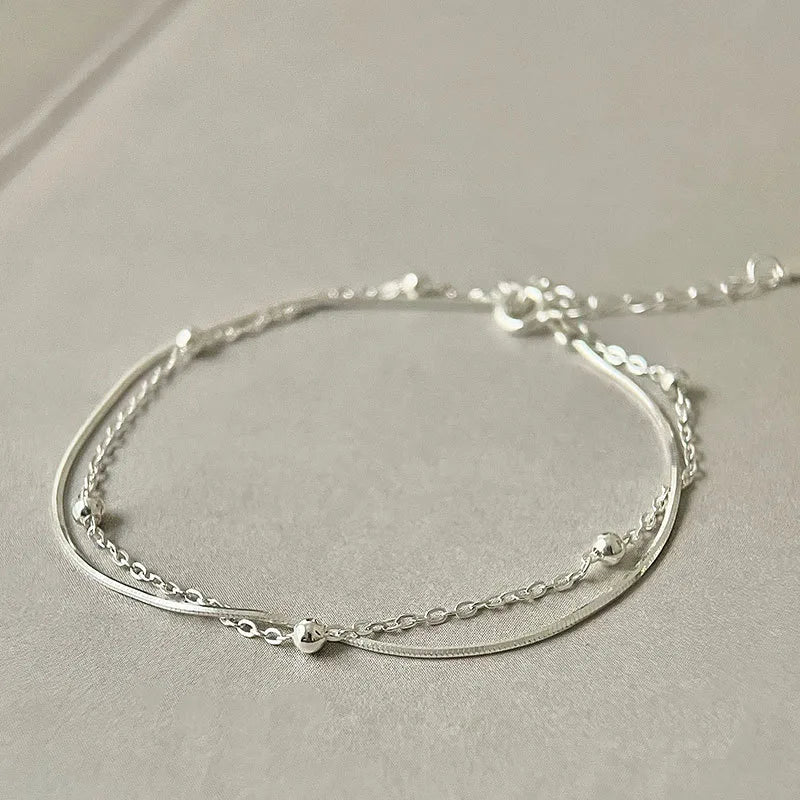 Sterling Silver Double Layer Snake Chain Bracelet