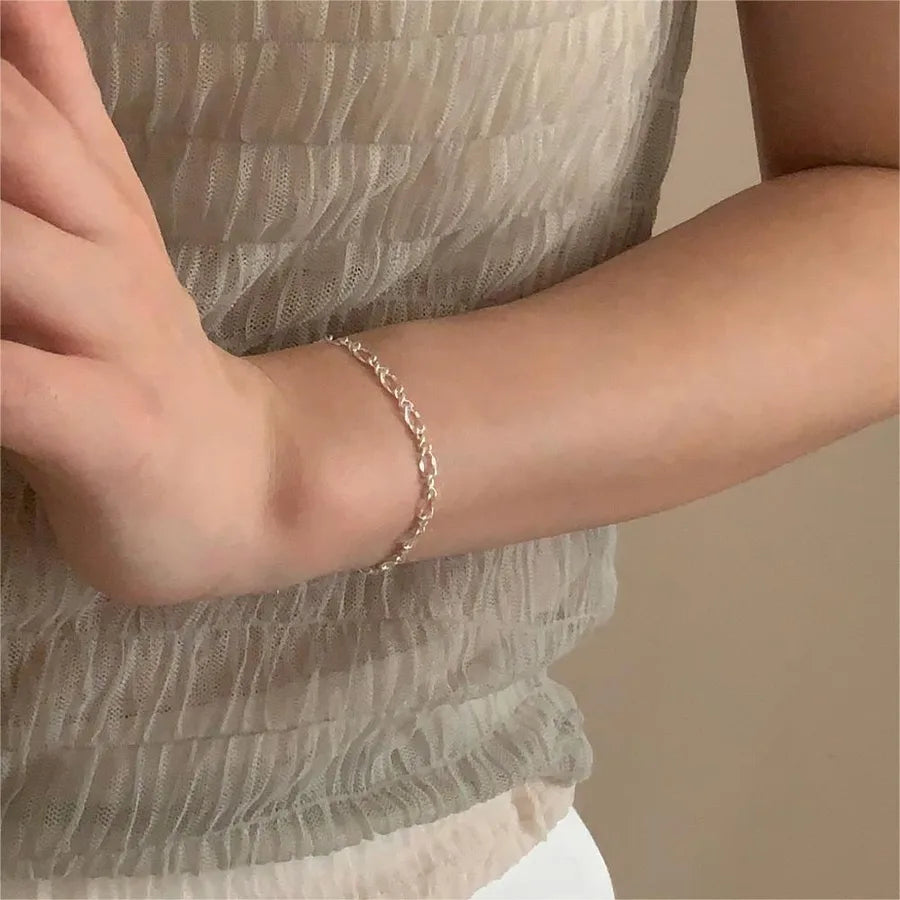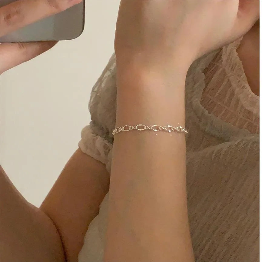Elevate your everyday style with this minimalist sterling silver geometric bracelet. Designed for versatility, this lightweight piece adds a modern edge to any outfit, whether you're dressing up or keeping it casual. Handcrafted with precision and care, its clean lines and subtle shine make it a timeless accessory for any jewelry lover. Perfect for layering or wearing solo, this bracelet is a must-have addition to your collection. Its delicate design ensures a comfortable fit, while the high-quality S925 silver guarantees lasting beauty. Make a subtle yet stylish statement with this contemporary hand chain.