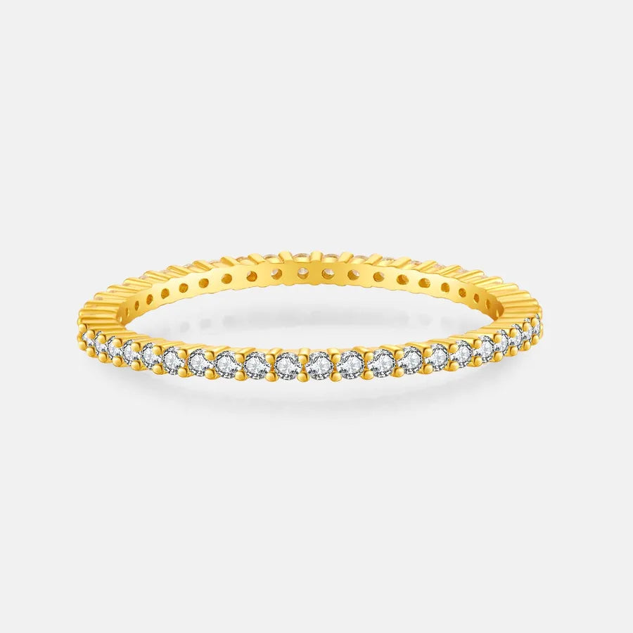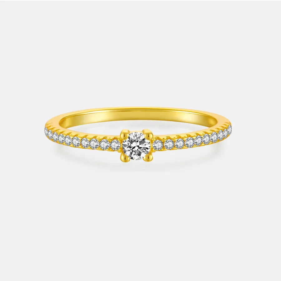 Podkreśl swój styl dzięki temu eleganckiemu damskiemu pierścionkowi wykonanemu ze srebra próby 925, ozdobionemu błyszczącymi inkrustacjami z cyrkonii. Pierścionek posiada podwójne wykończenie z 18-karatowego złota i białego złota, łącząc ponadczasową elegancję z nowoczesnym urokiem. Idealny na co dzień, do stylizacji ulicznych czy na oficjalne bankiety, doskonale uzupełnia każdą stylizację. Jednokolorowy design i inspirowana retro prostota czynią go wszechstronnym dodatkiem na każdą okazję. Lekki, waży zaledwie 2 g, zapewnia komfort bez kompromisów w kwestii elegancji. Niezbędny element Twojej kolekcji biżuterii lub przemyślany prezent dla kogoś wyjątkowego.