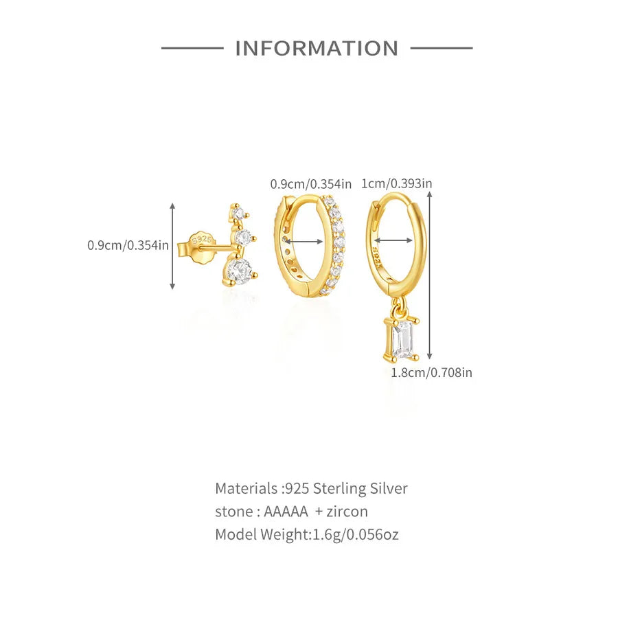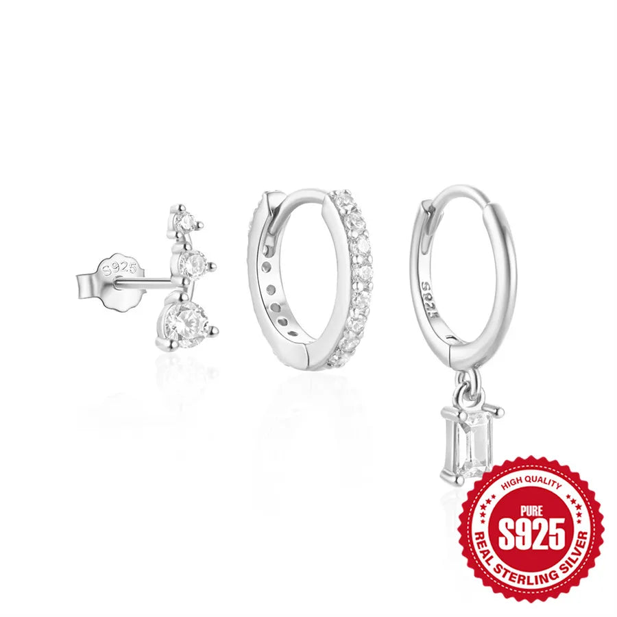 3-Piece 925 Sterling Silver Geometric Earrings Set
