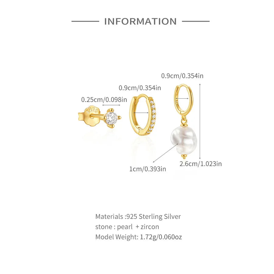 Elevate your jewelry collection with this elegant 3-piece set of geometric earrings crafted from premium 925 sterling silver. Each piece features a unique design with zircon inlays and pearl accents, offering a modern yet timeless look. Lightweight and versatile, these earrings are perfect for both daily wear and special occasions. Whether you're dressing up for a holiday event or adding a touch of sparkle to your everyday outfit, this set provides the perfect balance of simplicity and sophistication. Designed for women who appreciate quality and style, this set makes a thoughtful gift or personal treat.