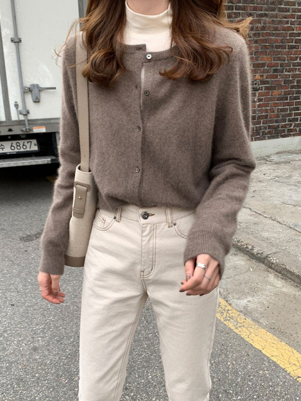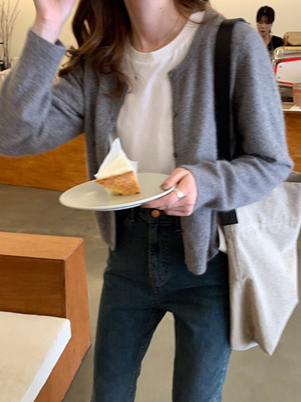 Pozostań przytulna i bez wysiłku stylowa dzięki temu warstwowemu kardiganowi z okrągłym dekoltem, zaprojektowanemu do noszenia w chłodniejsze dni. Wykonany z miękkiej mieszanki bawełny i poliestru, oferuje delikatną elastyczność dla komfortu i swobody ruchów. Gładki kolor i czysta sylwetka czynią go wszechstronnym elementem na codzienne dni, do pracy z domu lub weekendowe wyjścia. Połącz go z dżinsami, legginsami lub spódnicami midi, aby uzyskać elegancki, a zarazem swobodny wygląd. Okrągły dekolt i subtelny detal warstwowy dodają wymiaru bez nadmiaru objętości, co sprawia, że jest to korzystny wybór dla wszystkich typów sylwetki. Niezbędny element Twojej jesienno-zimowej garderoby.
