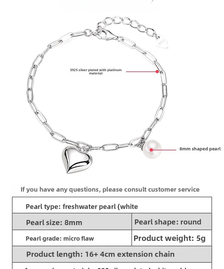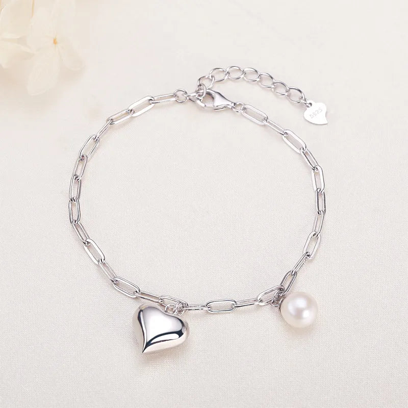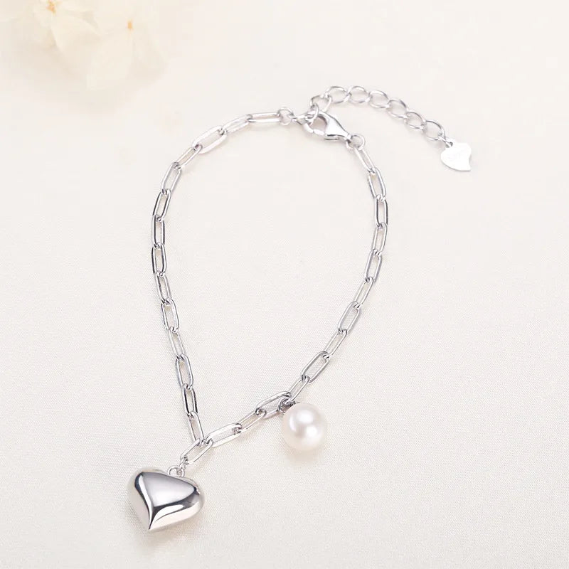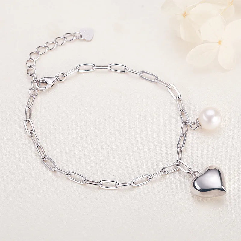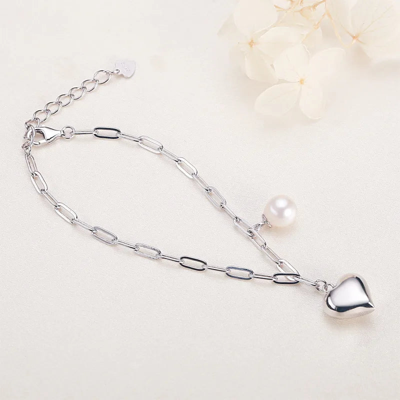 925 Silver Heart & Pearl Bracelet for Women