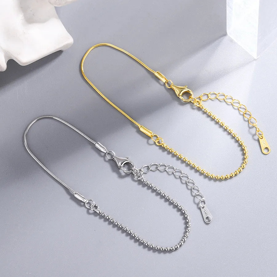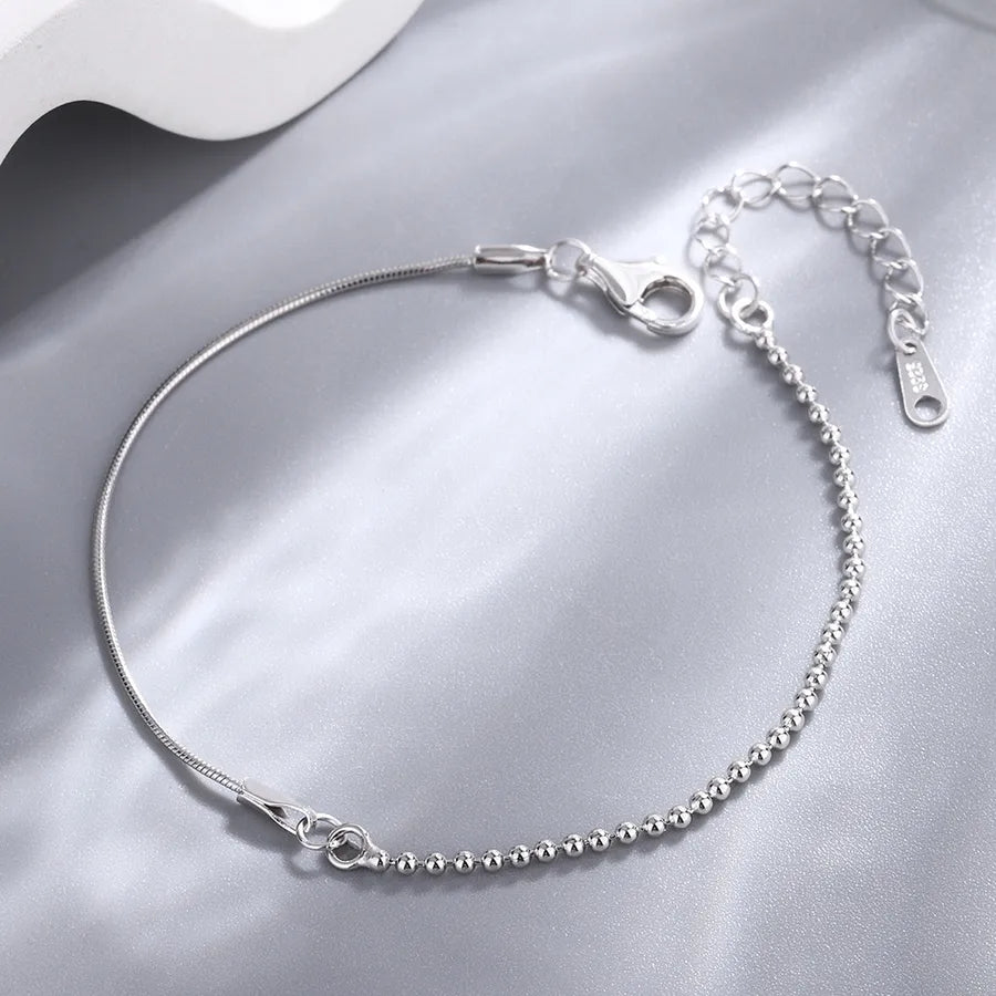Elevate your everyday style with this elegant sterling silver snake chain bracelet. Crafted from high-quality 925 sterling silver, this bracelet features a sleek geometric design that adds a modern touch to any outfit. Lightweight and comfortable, it’s perfect for daily wear or special occasions. The minimalist snake bone chain offers timeless appeal, making it a versatile accessory for layering or wearing solo. Whether you're dressing up or keeping it casual, this bracelet brings effortless sophistication to your jewelry collection. A must-have piece for women who appreciate refined, understated fashion with a contemporary edge.