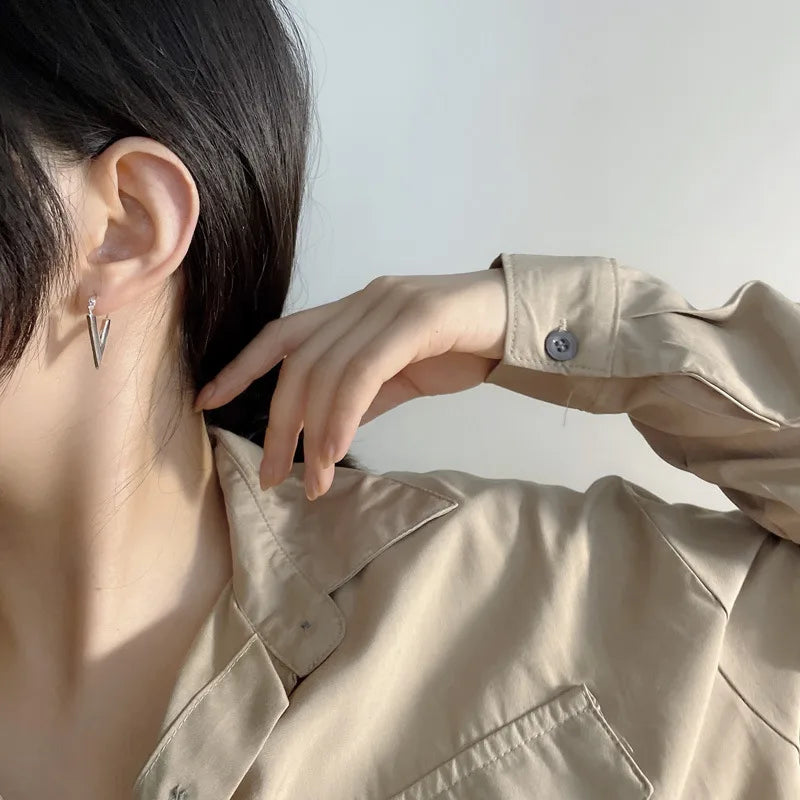 Elevate your everyday look with these elegant V-shaped dangle earrings, crafted from high-quality 925 sterling silver and finished with luxurious 18K gold and silver plating. Designed for modern women who appreciate simplicity and sophistication, these earrings offer a lightweight feel and a striking silhouette. Perfect for daily wear, weekends, or special holidays, they add a subtle sparkle to any outfit. The electroplated finish ensures lasting shine and durability, while the sterling silver ear needle provides comfort and hypoallergenic wear. Whether you're dressing up or keeping it casual, these earrings are a timeless accessory staple.