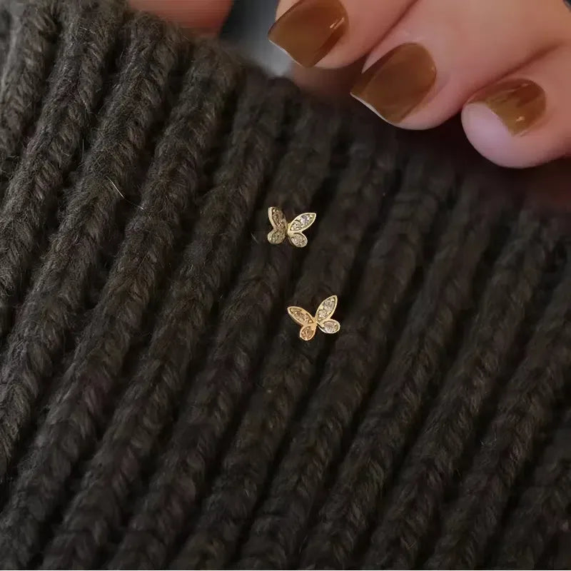 Delicately crafted for everyday elegance, these butterfly stud earrings are made from genuine 925 sterling silver and finished with a radiant 14K gold plating. Their simple yet charming design makes them perfect for daily wear or special occasions. Lightweight and polished for a smooth finish, they offer a comfortable fit while adding a subtle sparkle to your look. The butterfly motif adds a whimsical touch, making them a thoughtful gift or a stylish treat for yourself. Designed for women who appreciate minimalist jewelry with a hint of luxury, these studs are timeless and versatile.