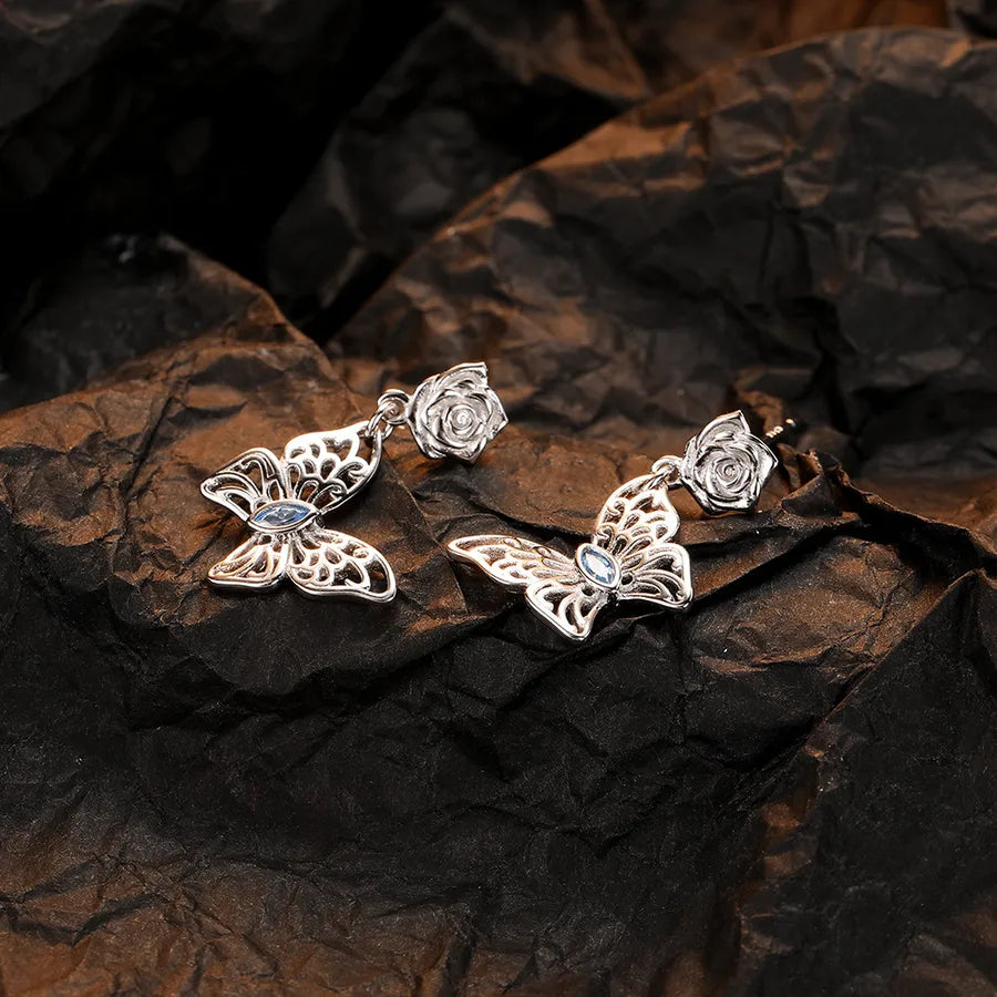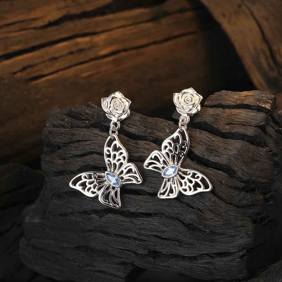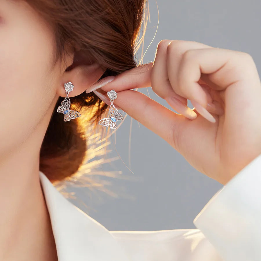 Delicate and feminine, these 925 Sterling Silver Butterfly Drop Earrings add a graceful touch to any outfit. Crafted with precision, they feature a charming butterfly design and are plated in radiant white gold for a luxurious finish. Lightweight and comfortable, they’re perfect for daily wear or special occasions. The sweet, whimsical style makes them a thoughtful gift or a lovely treat for yourself. Whether you're dressing up or keeping it casual, these earrings bring elegance and sparkle to your look. Elevate your accessory game with these timeless, nature-inspired drop earrings.