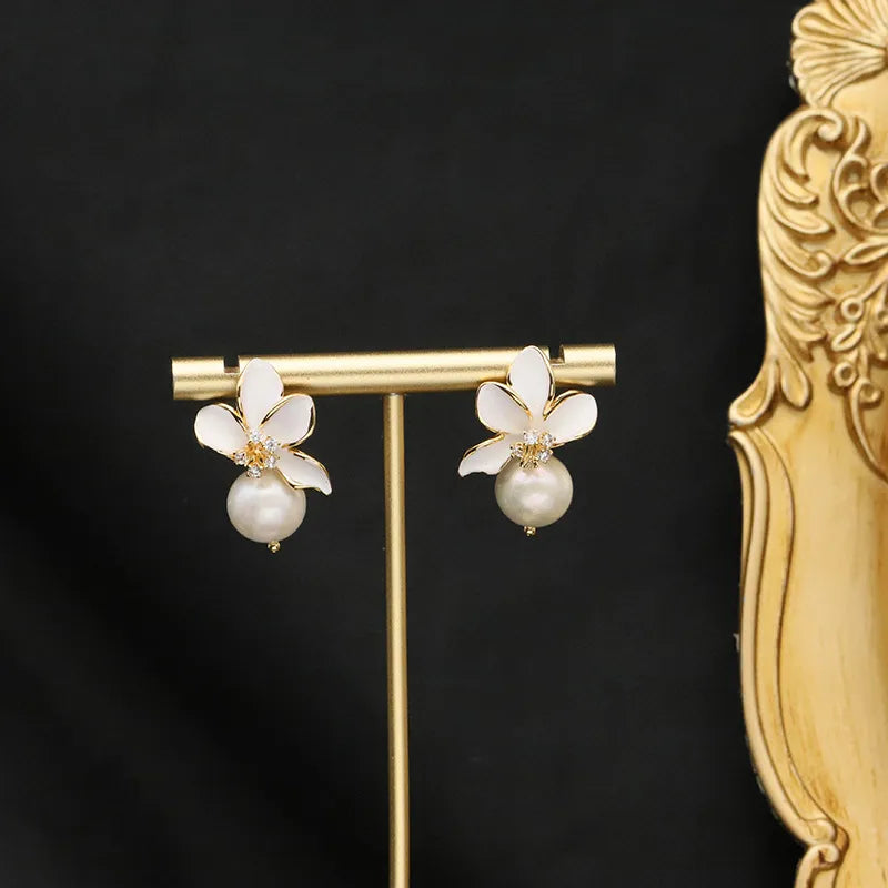 925 Silver Pearl & Zircon Flower Stud Earrings