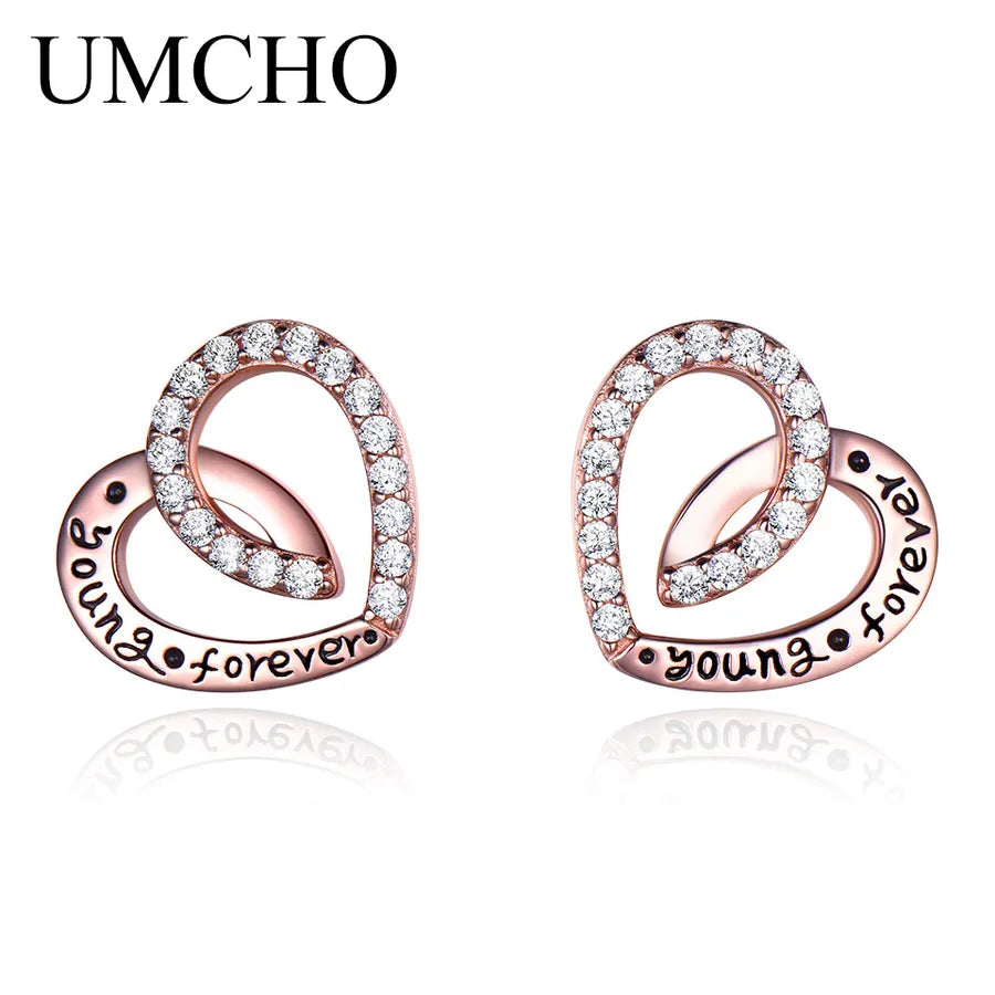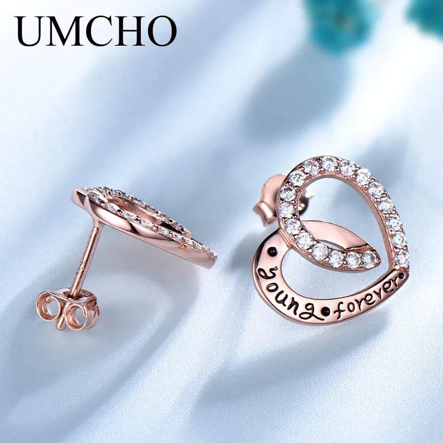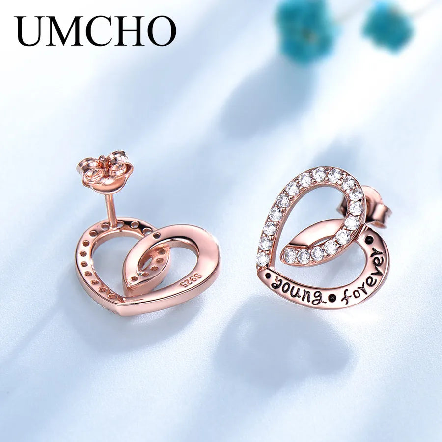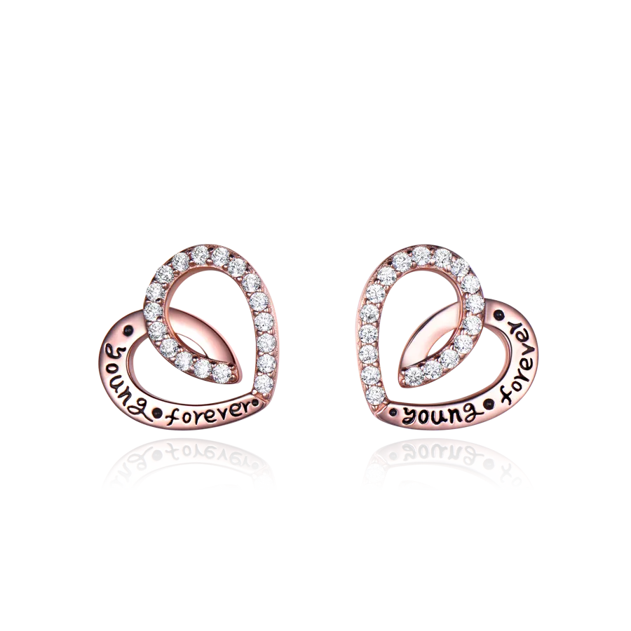 Rose Gold Heart Earrings in 925 Sterling Silver