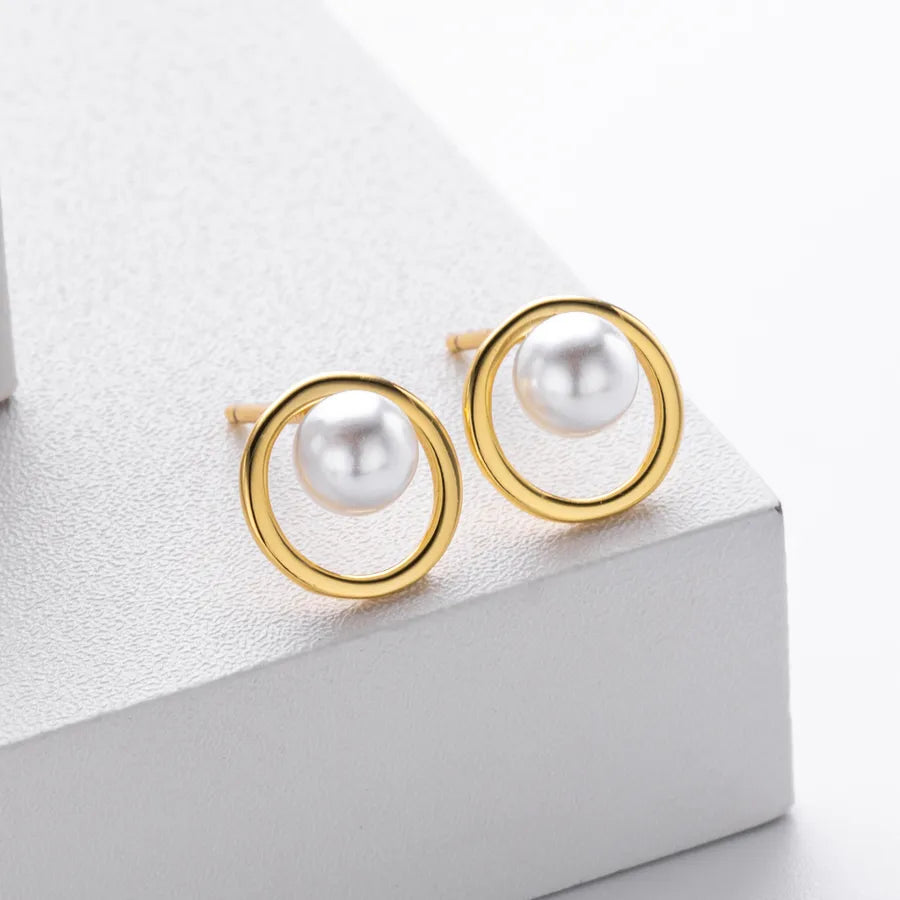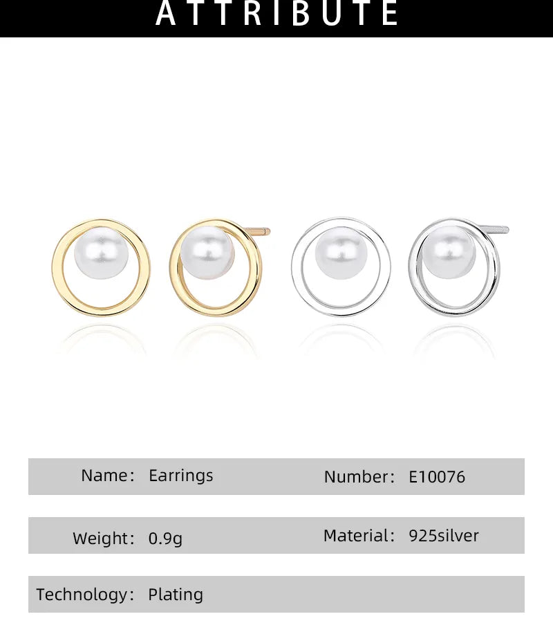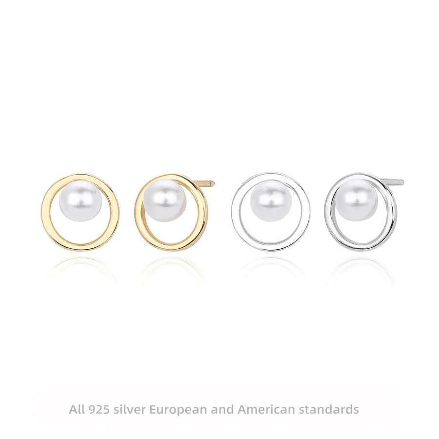 Elevate your everyday elegance with these timeless pearl stud earrings crafted from genuine 925 sterling silver. Featuring a classic round design, each earring is beautifully inlaid with a luminous pearl and finished with your choice of 18K gold, platinum, or rhodium plating. The polished surface and refined craftsmanship make them perfect for daily wear or special occasions. Designed for comfort and durability, these lightweight earrings offer a secure fit and a sophisticated look that complements any outfit. Whether you're dressing up or keeping it casual, these studs add a touch of luxury to every moment.
