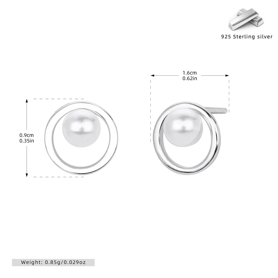 Elegant Pearl Stud Earrings in 925 Sterling Silver