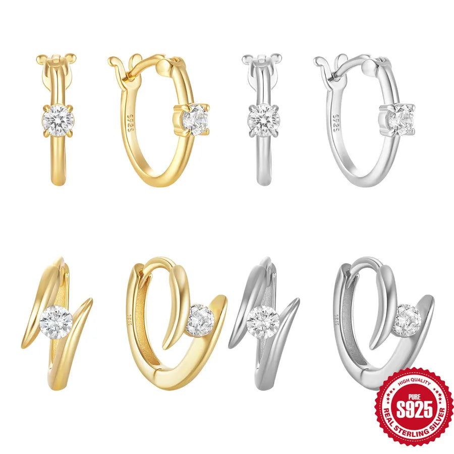 Elevate your everyday style with these elegant 925 Sterling Silver Zircon Hoop Earrings. Designed in a classic circular shape, these hoops feature a refined inlay of sparkling zircon stones that add a subtle touch of glamour. Lightweight and comfortable, they are perfect for daily wear or casual outings. The simple yet sophisticated design complements any outfit, making them a versatile addition to your jewelry collection. Crafted from high-quality sterling silver, these earrings offer lasting shine and durability. Whether you're dressing up or down, these hoops are your go-to accessory for effortless elegance.