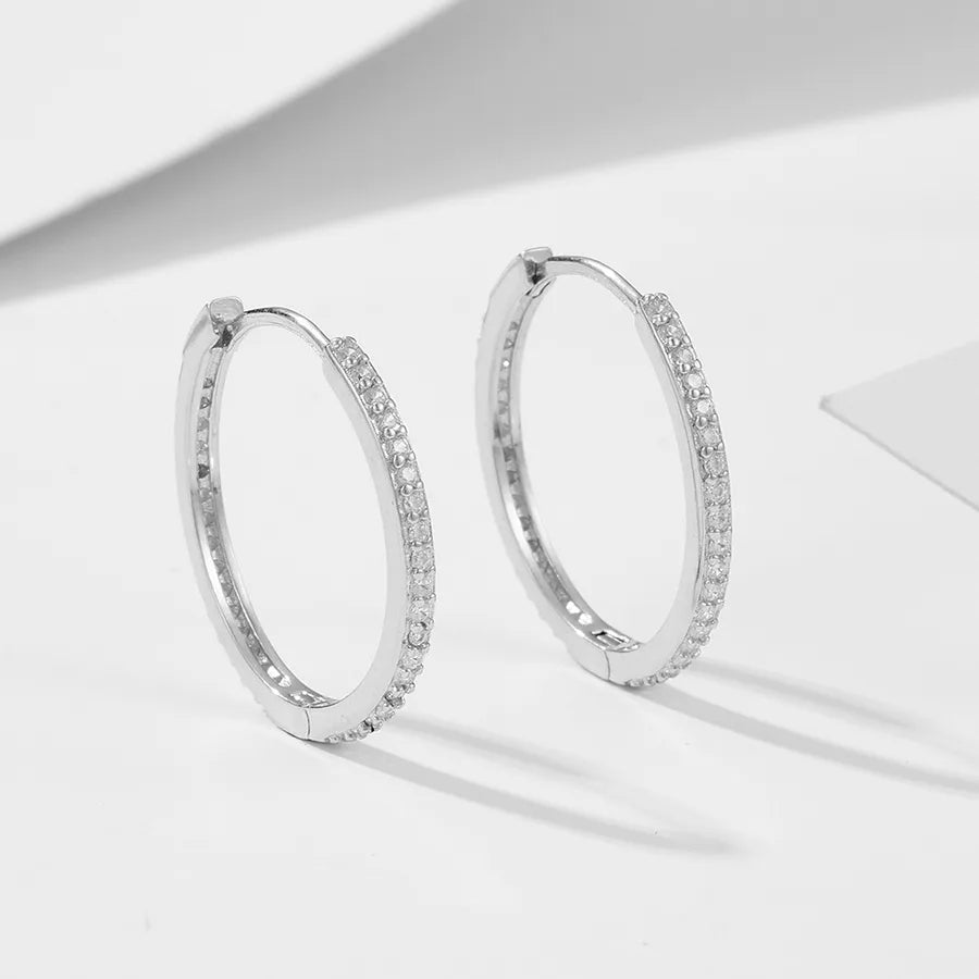 925 Sterling Silver Zircon Geometric Hoop Earrings