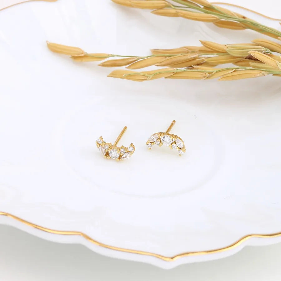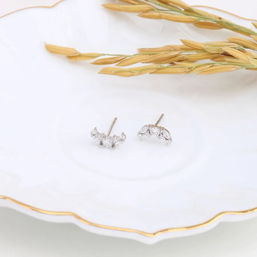 925 Silver Moon Zircon Stud Earrings