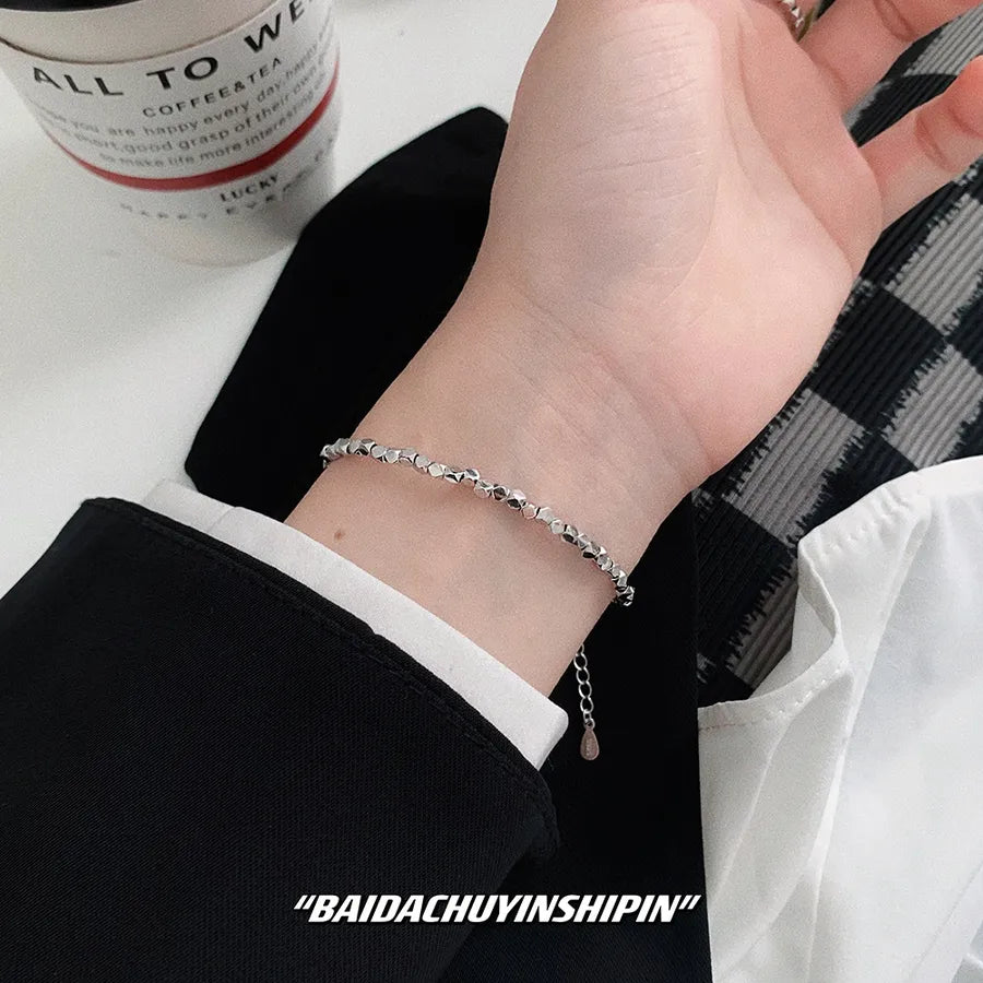 Elevate your everyday style with this elegant 925 sterling silver geometric bracelet. Designed for women who appreciate minimalist beauty, this piece combines modern aesthetics with timeless charm. The sleek geometric pattern adds a contemporary edge, making it perfect for both casual and formal wear. Crafted from high-quality sterling silver, it offers durability and a polished finish that resists tarnish. Lightweight at just 5g, it’s comfortable enough for all-day wear. Whether worn solo or stacked with other bracelets, this accessory adds a refined touch to any outfit. A must-have addition to your jewelry collection.