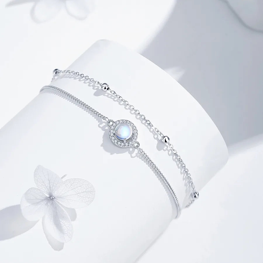 Elevate your everyday look with this elegant 925 sterling silver bracelet featuring a delicate semicircle design inlaid with shimmering moonstone and zircon. Perfect for daily wear or weekend outings, this bracelet combines simplicity with sparkle, making it a versatile addition to any jewelry collection. The cable chain and spring ring clasp ensure a secure and comfortable fit, while the lightweight 3g design adds subtle charm without feeling heavy. Whether worn alone or layered with other pieces, this bracelet offers timeless style and refined beauty for all seasons and occasions.