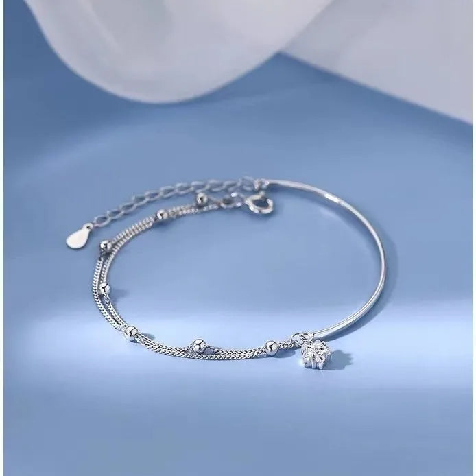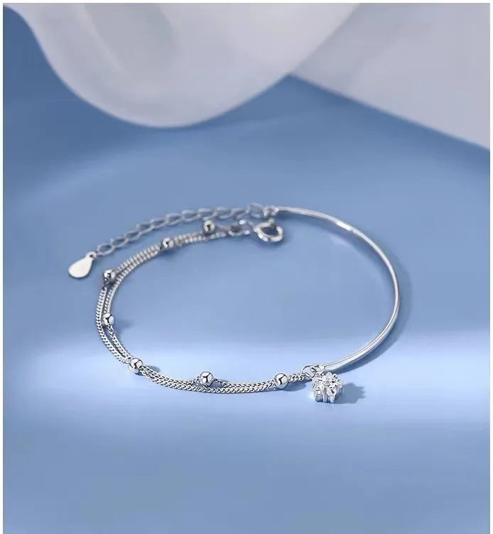 Delicate and timeless, this 925 Sterling Silver Star Charm Bracelet adds a touch of celestial charm to your everyday look. Crafted from high-quality sterling silver, it features a dainty star motif and a secure lobster clasp for easy wear. Lightweight and comfortable, it’s perfect for daily use or special occasions. The sweet and simple design complements any outfit, making it a versatile addition to your jewelry collection. Whether you're treating yourself or gifting a loved one, this bracelet is a beautiful expression of style and elegance that shines in every season.