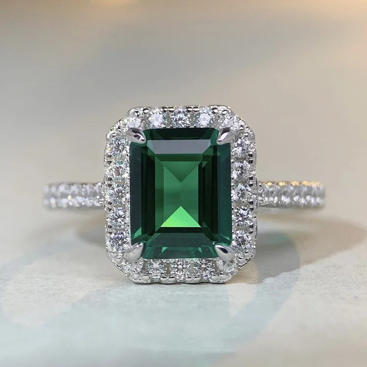 Sterling Silver Square Artificial Diamond Ring