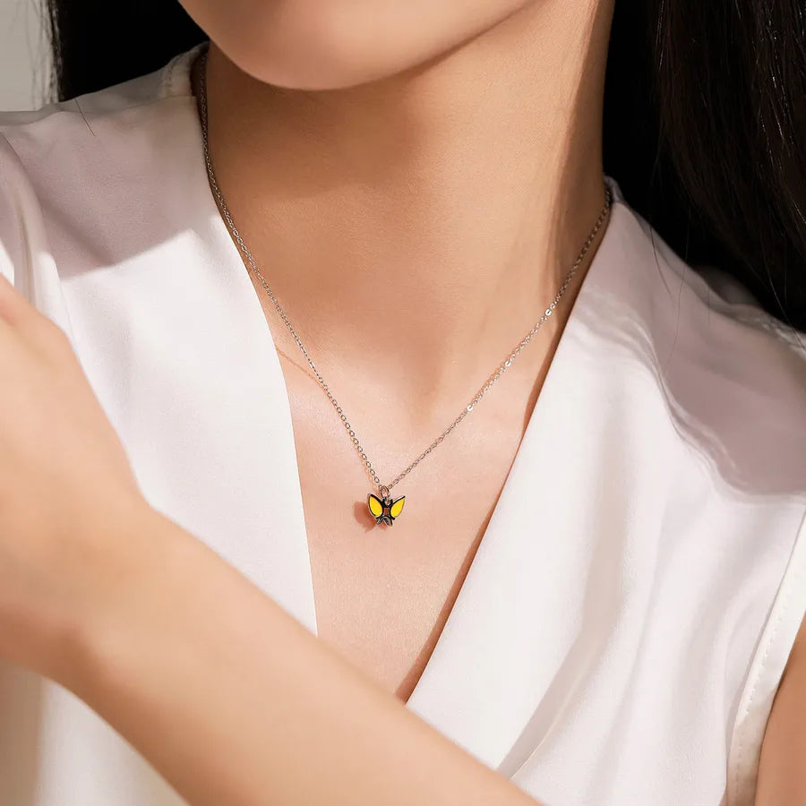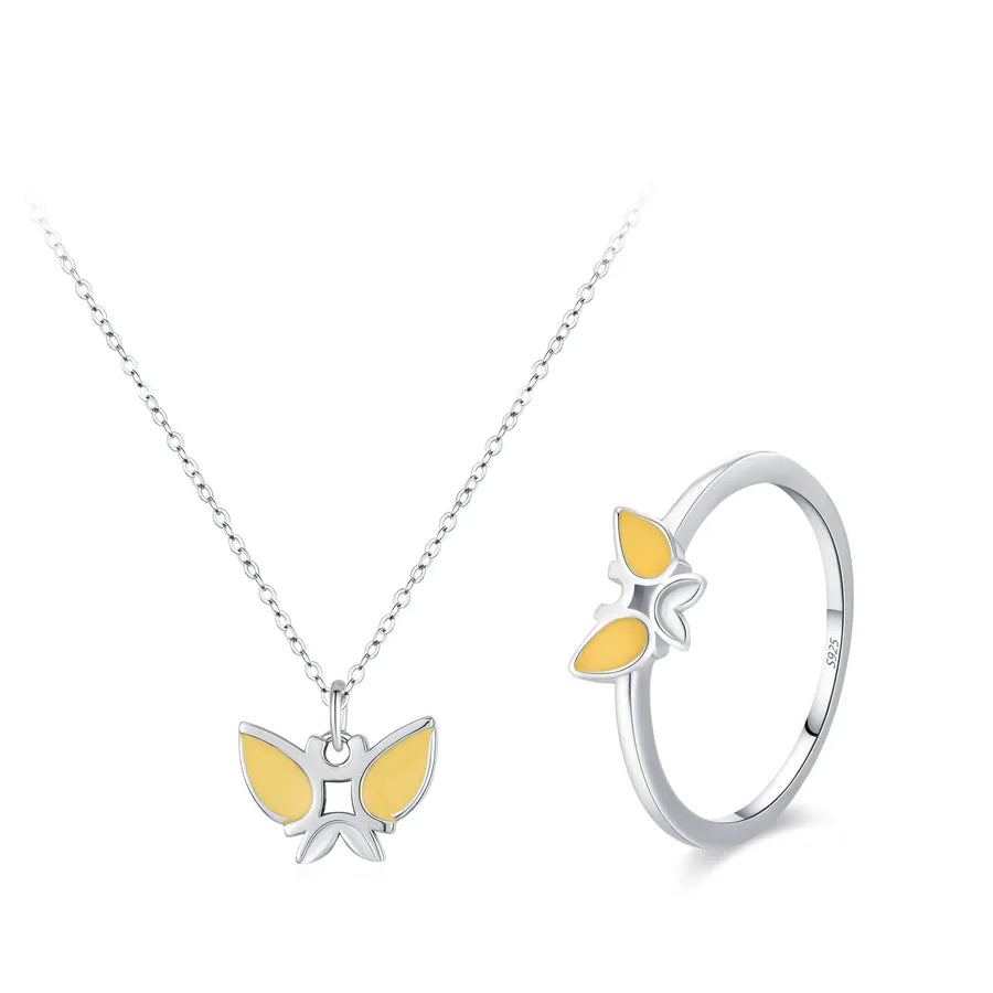 Delight in whimsical charm with this Sterling Silver Butterfly Enamel Jewelry Set, designed for women who love playful elegance. Featuring a beautifully crafted butterfly ring and matching necklace, this set blends cute cartoon-inspired details with high-quality materials. Made from genuine 925 sterling silver and finished with colorful enamel, it’s perfect for daily wear or as a thoughtful gift. The lightweight design ensures comfort, while the simple style adds a touch of fun to any outfit. Whether you're dressing up or keeping it casual, this set brings a sweet, fashionable flair to your jewelry collection.