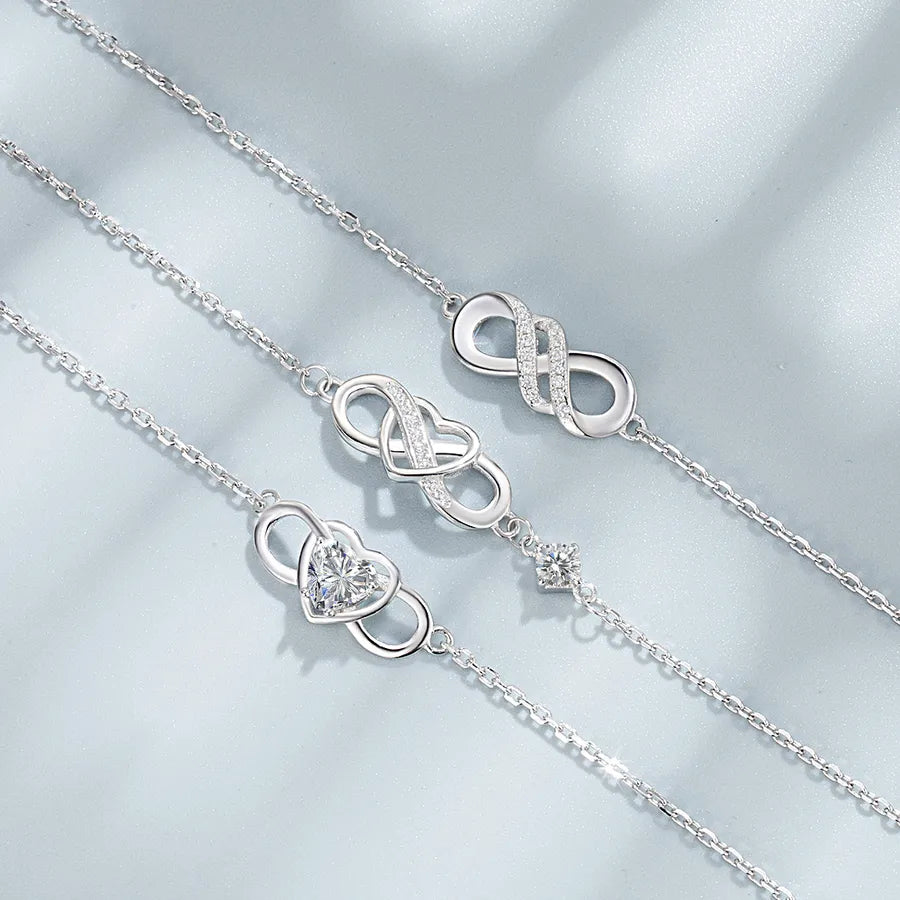 Celebrate everlasting love and timeless elegance with this Sterling Silver Infinity Love Bracelet. Crafted from premium 925 sterling silver, this bracelet features a delicate infinity symbol adorned with shimmering diamond accents and elegant script. Its versatile design makes it perfect for both everyday wear and special occasions. Lightweight and comfortable, it adds a touch of sophistication to any outfit. Whether you're treating yourself or gifting someone special, this bracelet is a meaningful piece that symbolizes eternal connection and style. Pair it with other jewelry or wear it solo for a refined, minimalist look that never goes out of fashion.