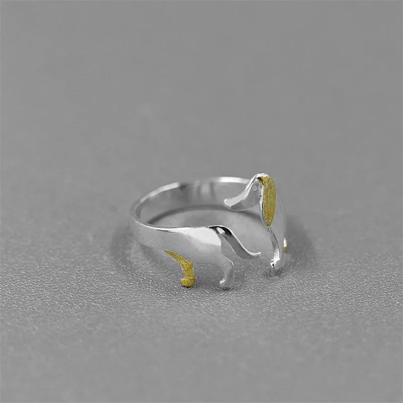 Celebrate your love for dogs with this charming 925 sterling silver adjustable ring. Designed for everyday wear, this open ring features a playful dog motif that adds a touch of personality to your style. Crafted from high-quality sterling silver with a polished plating finish, it offers both durability and elegance. The open design ensures a comfortable, customizable fit for most finger sizes. Whether you're treating yourself or gifting a fellow dog lover, this simple yet stylish piece is a delightful accessory that complements any outfit while showcasing your affection for furry friends.