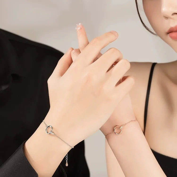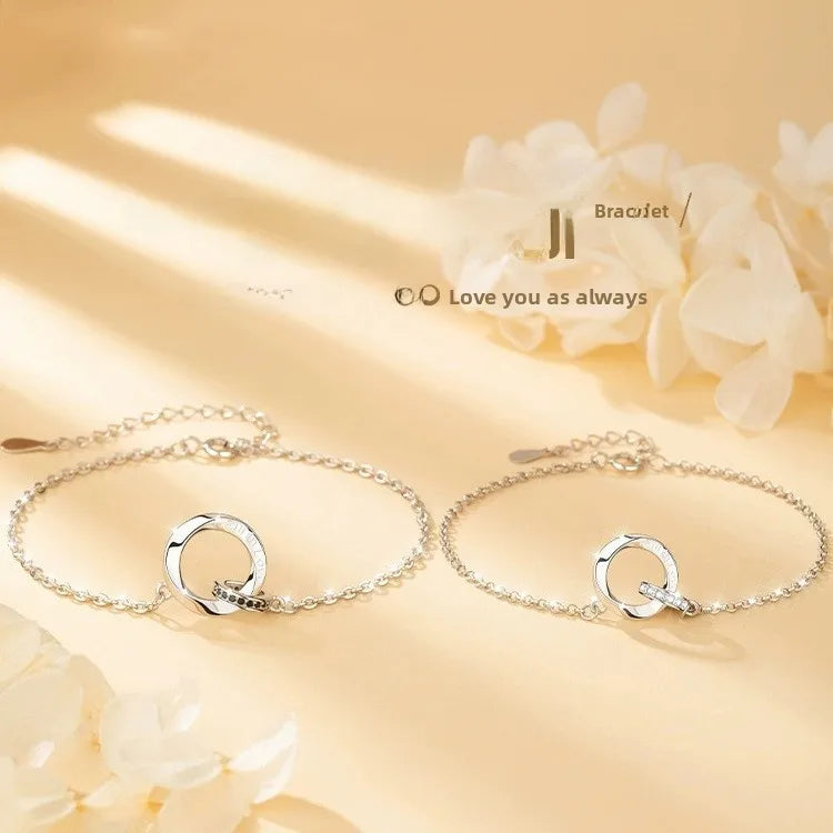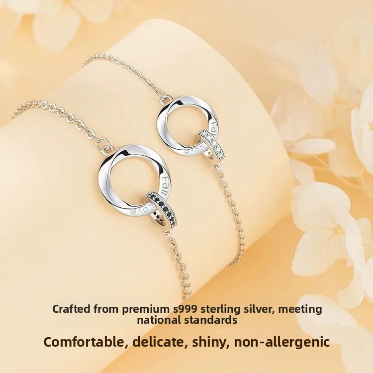 Celebrate your bond with this elegantly crafted Mobius couple's bracelet, made from premium S999 sterling silver and finished with a luxurious platinum plating. Its minimalist geometric design symbolizes infinity and unity, making it a meaningful gift for your significant other. The bracelet features a zircon inlay that adds a subtle sparkle, perfect for daily wear or special occasions. Lightweight at just 3g, it offers comfort without compromising style. Whether you're dressing up or keeping it casual, this timeless piece complements any outfit and serves as a lasting reminder of love and connection.