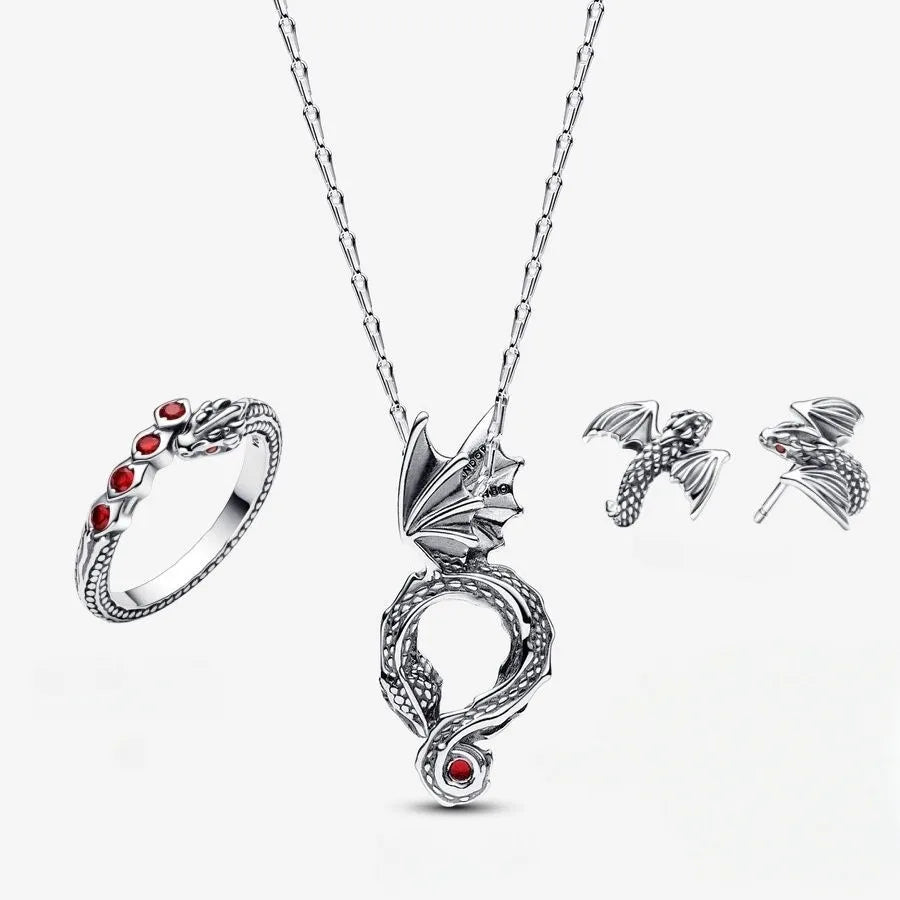 Dragon Silver Jewelry Set – Ring, Necklace & Earrings