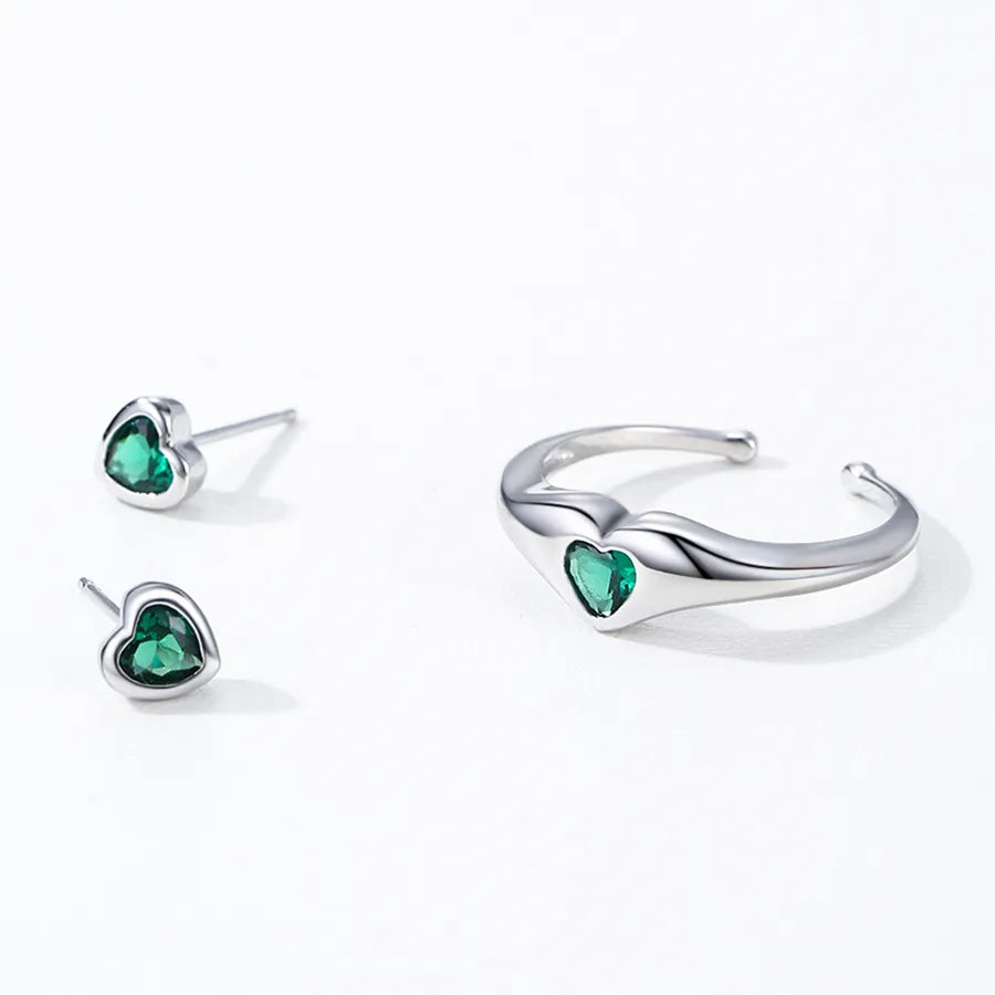 Elevate your everyday elegance with this romantic green heart-shaped jewelry set, crafted from premium 925 sterling silver. Featuring a matching pair of stud earrings and a delicate ring, this set blends French-inspired charm with modern simplicity. The vibrant green stones add a pop of color, making it perfect for casual outings or daily wear. Lightweight and timeless, this set is designed for women who appreciate refined style and subtle luxury. Whether you're treating yourself or gifting someone special, this jewelry set is a versatile addition to any accessory collection, suitable for all seasons and occasions.