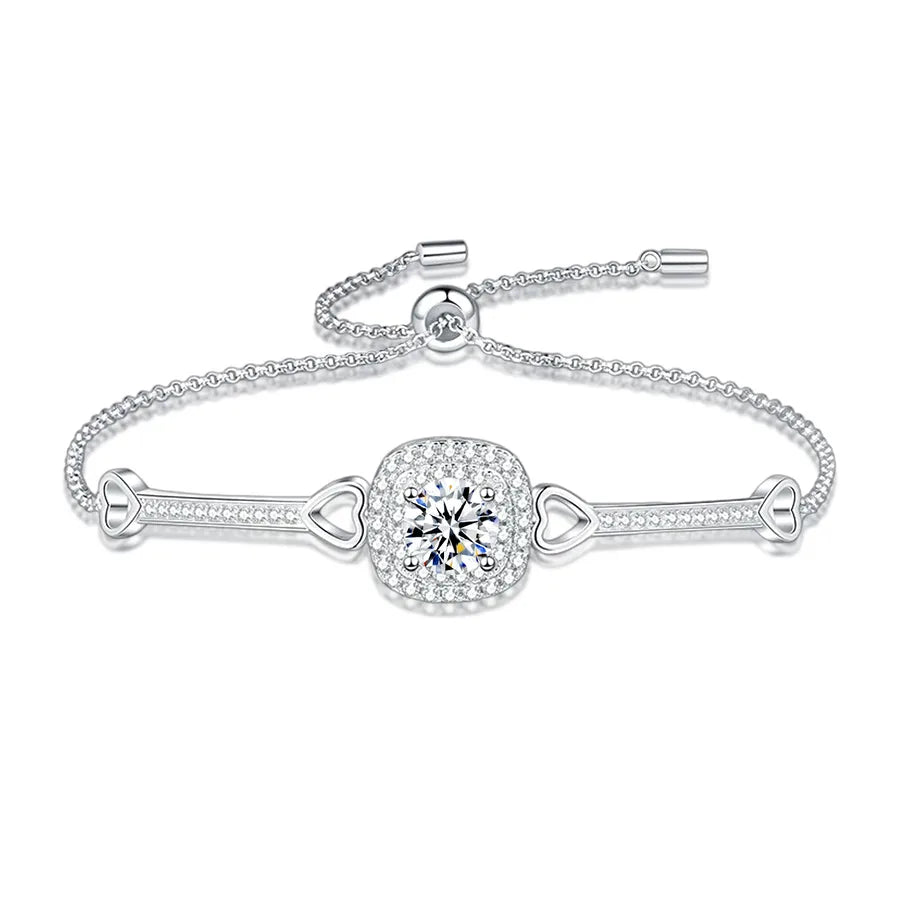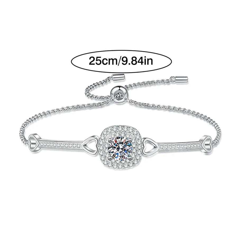 Elevate your accessory game with this stunning 1 carat moissanite bracelet, crafted from premium 925 sterling silver and plated in radiant white gold. Designed with a geometric pattern and secured with a lobster clasp, this bracelet exudes luxury and sophistication. Whether you're attending a wedding, celebrating a birthday, or enjoying a night out, this piece adds a glamorous sparkle to any occasion. Its timeless design and romantic shine make it a perfect gift for loved ones or a cherished addition to your own jewelry collection. Lightweight and versatile, it complements every outfit effortlessly.