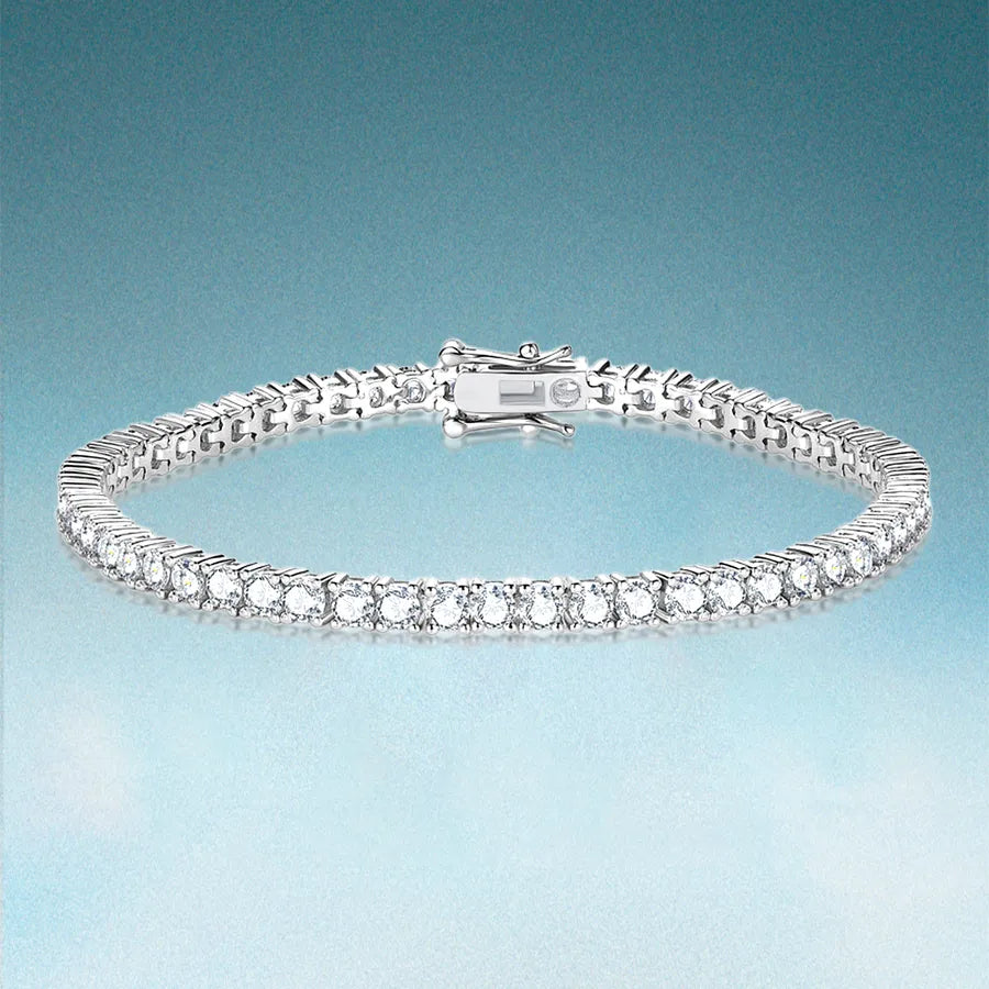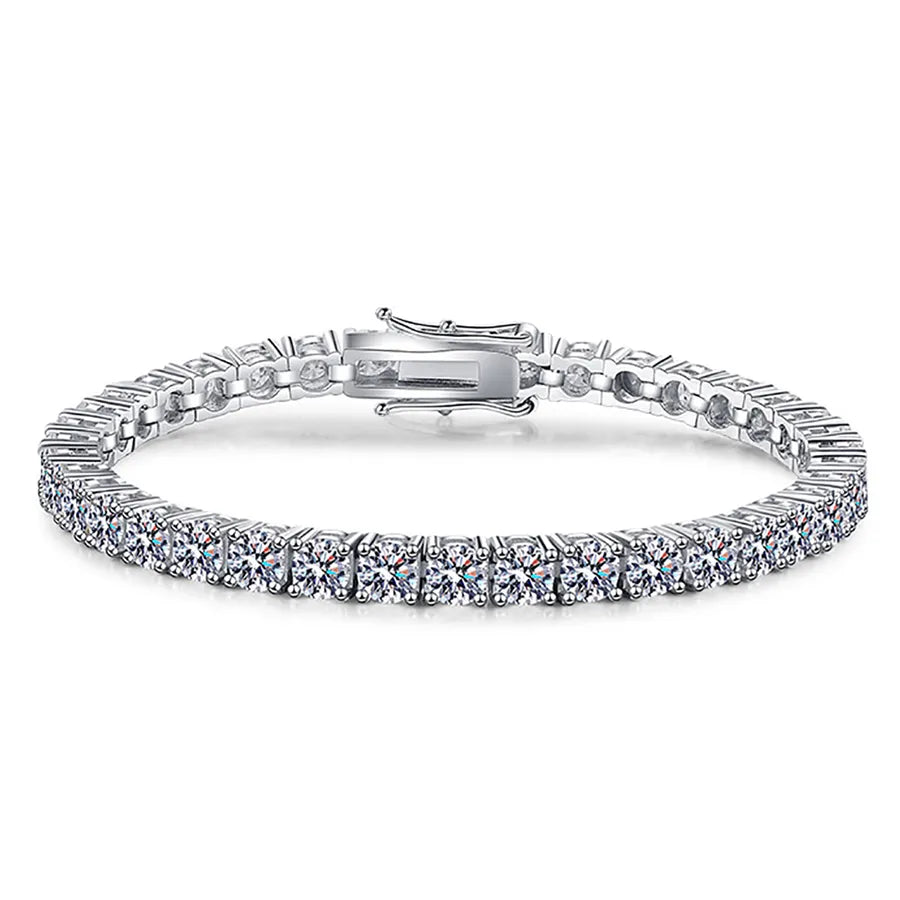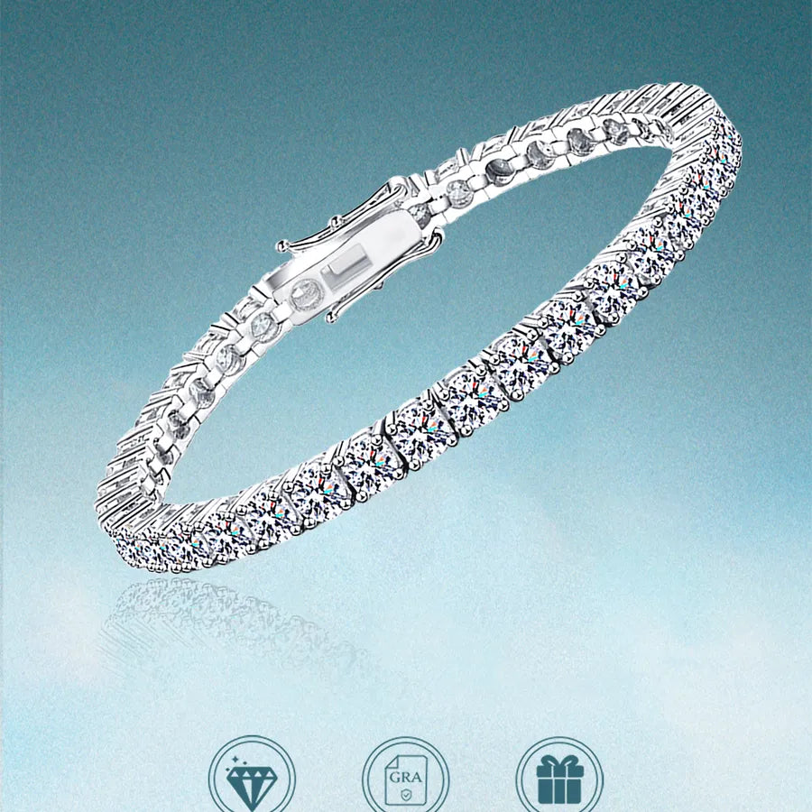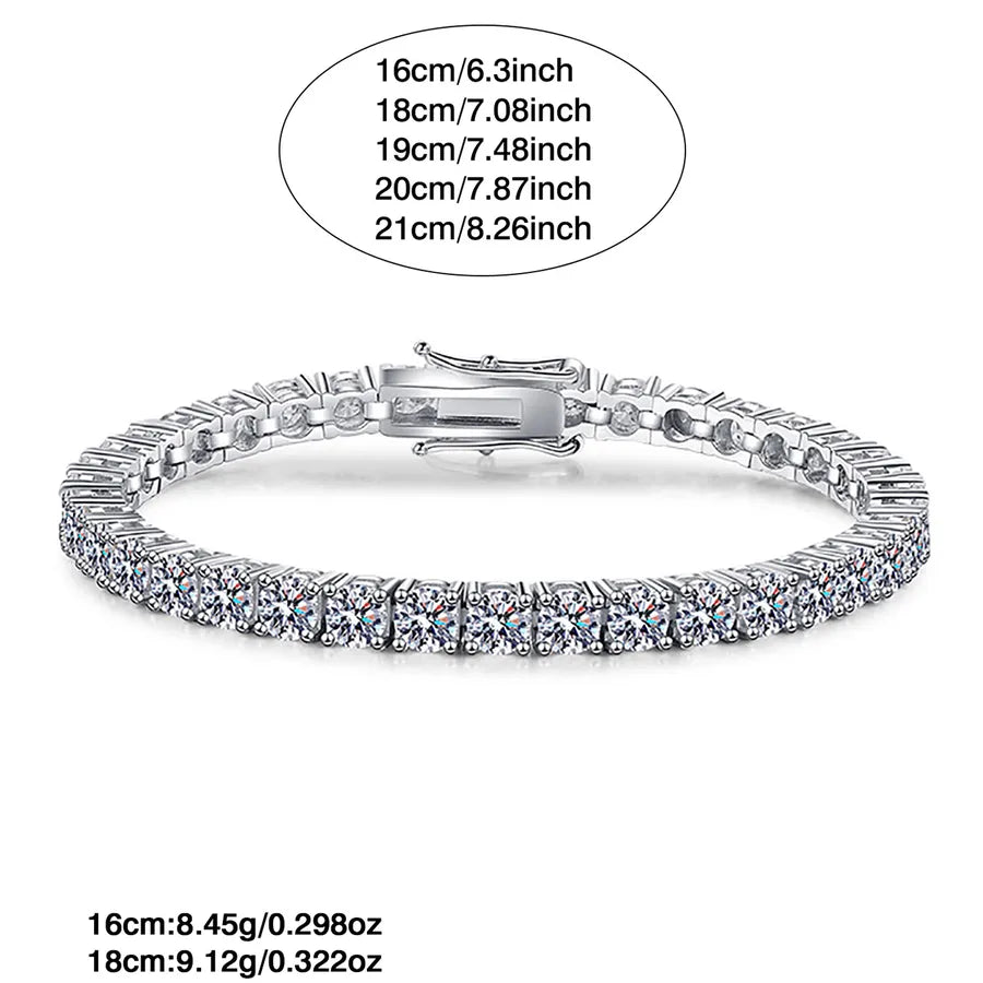 Elevate your jewelry collection with this elegant moissanite tennis bracelet, crafted from premium 925 sterling silver and plated in radiant white gold. Designed with a geometric pattern and a secure box clasp, this bracelet adds a touch of glamour to any outfit. Whether you're attending a party, celebrating a special occasion, or simply enhancing your everyday style, its luxurious sparkle makes it a perfect choice. Lightweight yet durable, it’s ideal for all-season wear and makes a thoughtful gift for birthdays, holidays, or anniversaries. Add timeless sophistication to your wrist with this dazzling accessory.