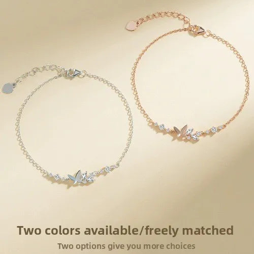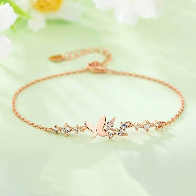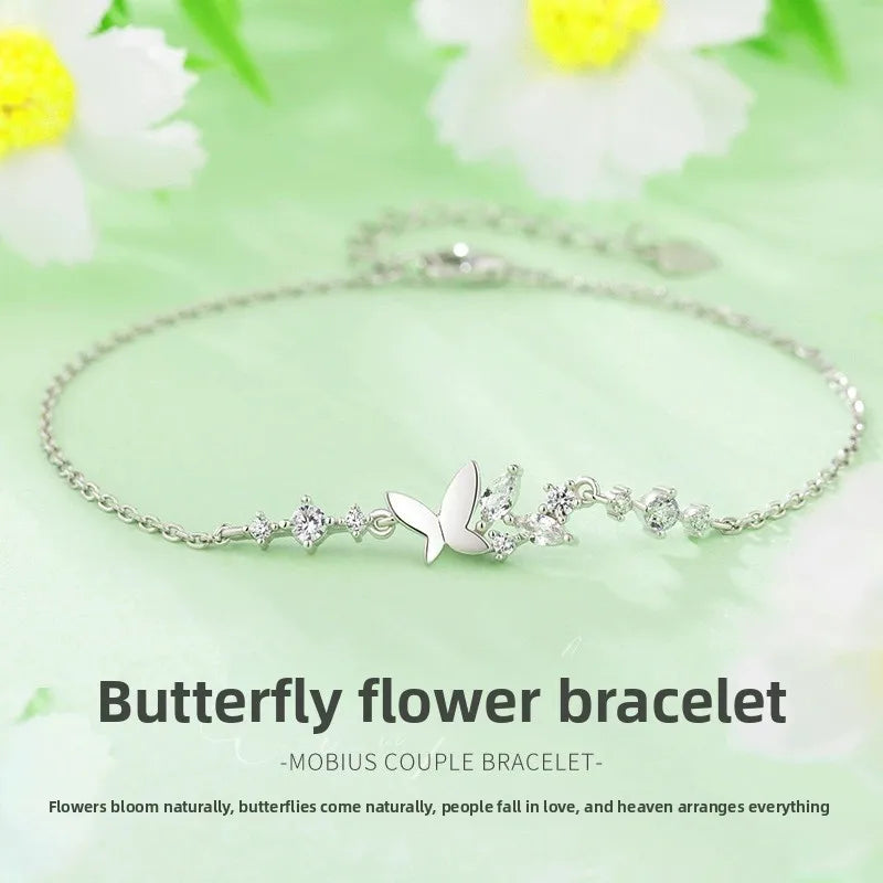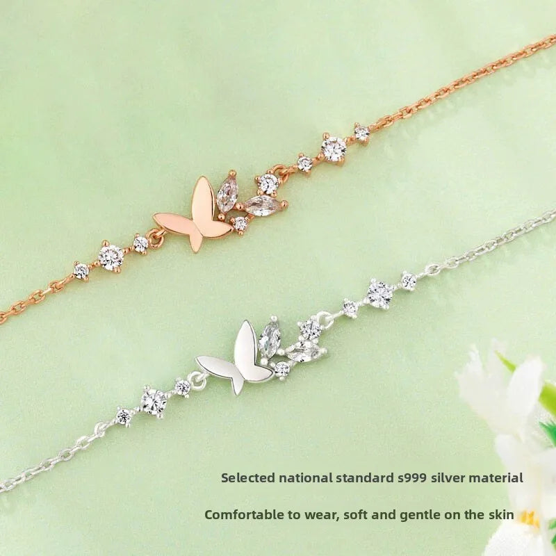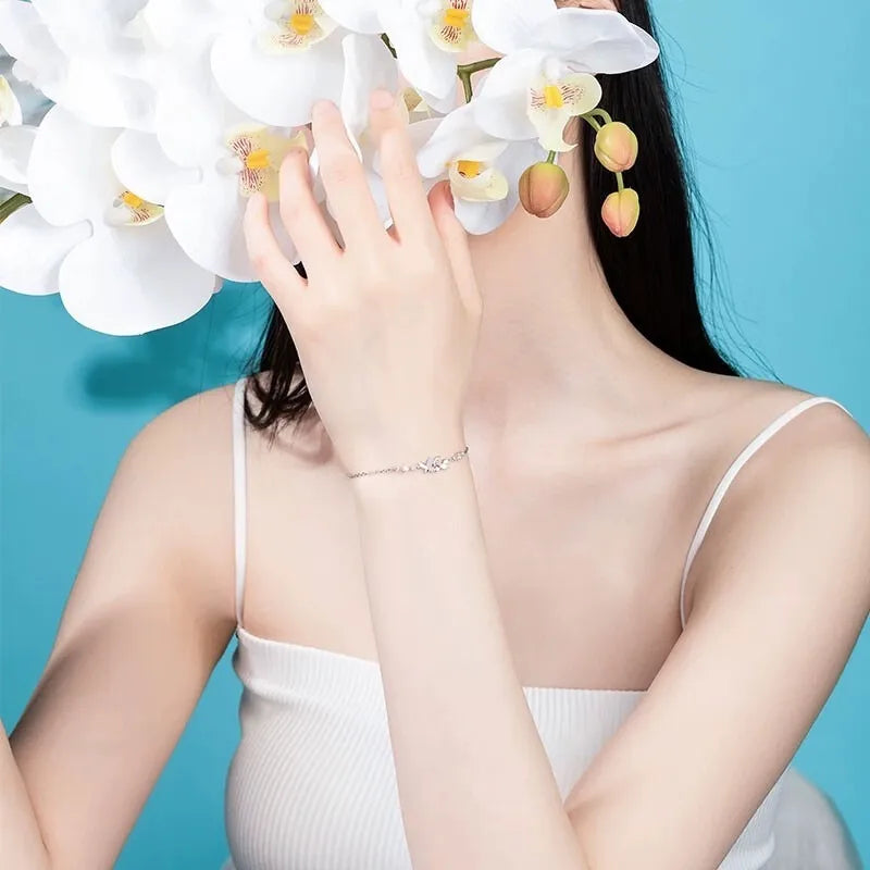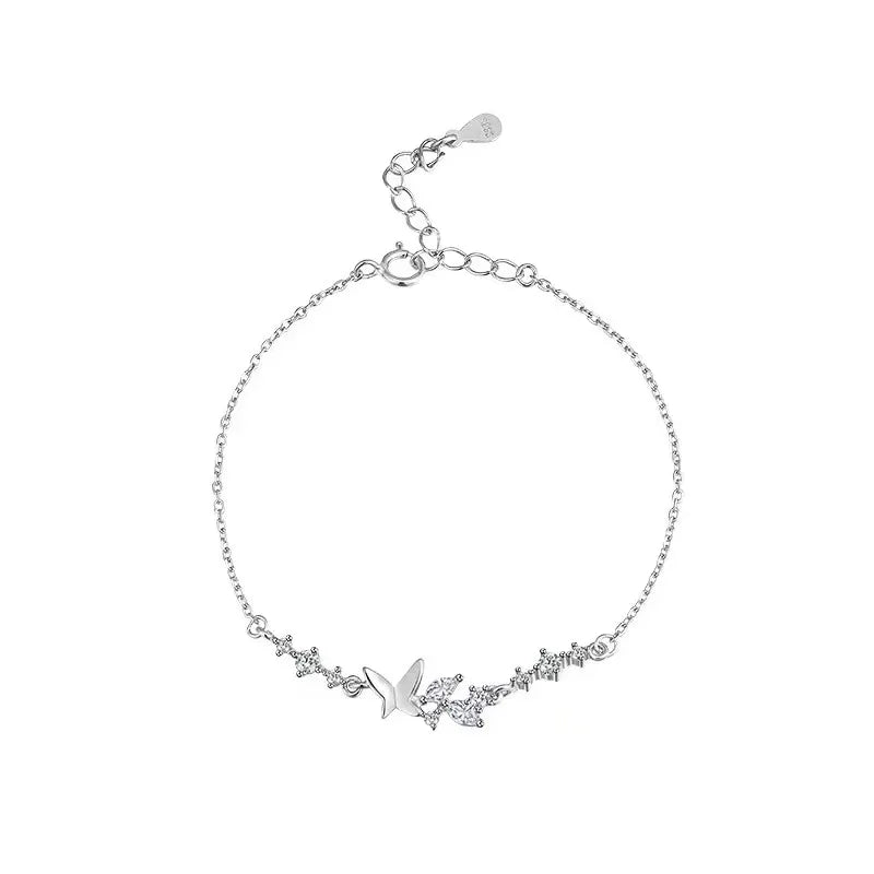 Gracefully designed with elegance in mind, this Butterfly Flower Silver Bracelet is crafted from high-purity S999 silver and adorned with sparkling zircon accents. Platinum plating enhances its brilliance, while the delicate butterfly and floral motif adds a romantic, feminine touch. Lightweight and comfortable, this bracelet is perfect for daily wear or as a heartfelt gift for someone special. Whether you're dressing up for a date or adding charm to your everyday outfit, this timeless piece blends simplicity and sophistication. A beautiful accessory that captures nature's beauty and your unique style in one elegant design.