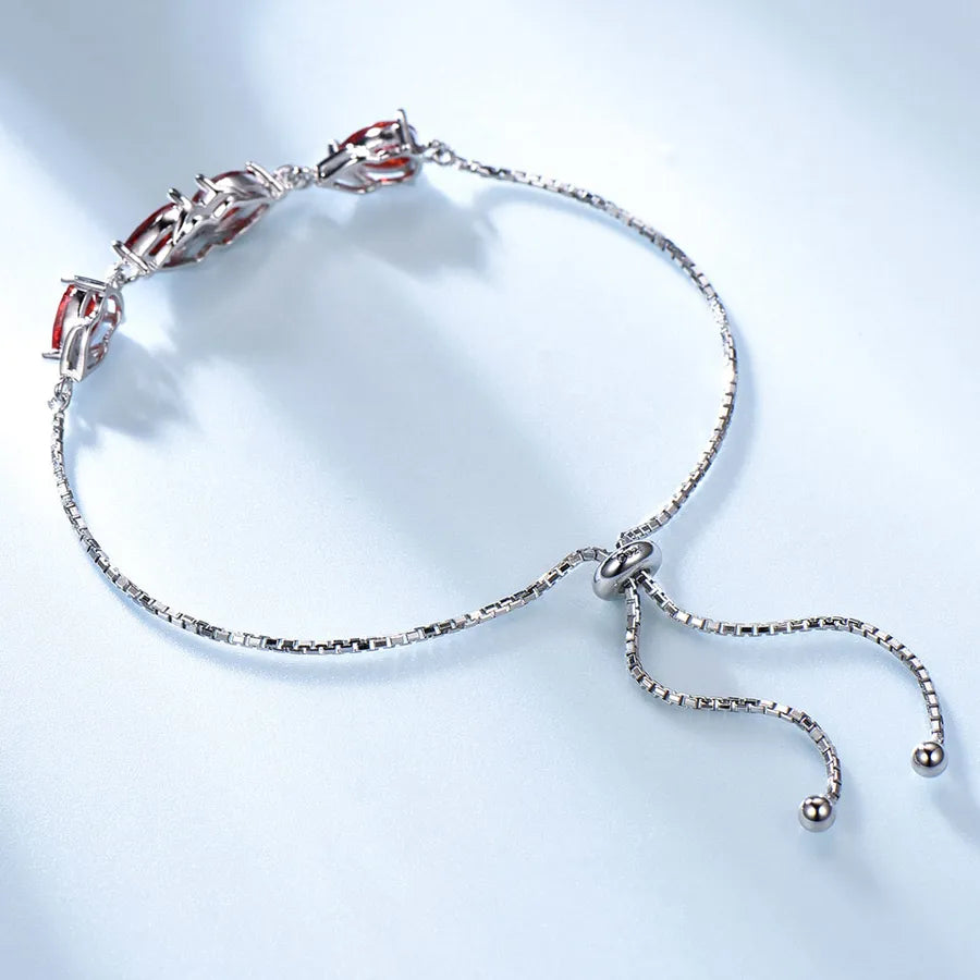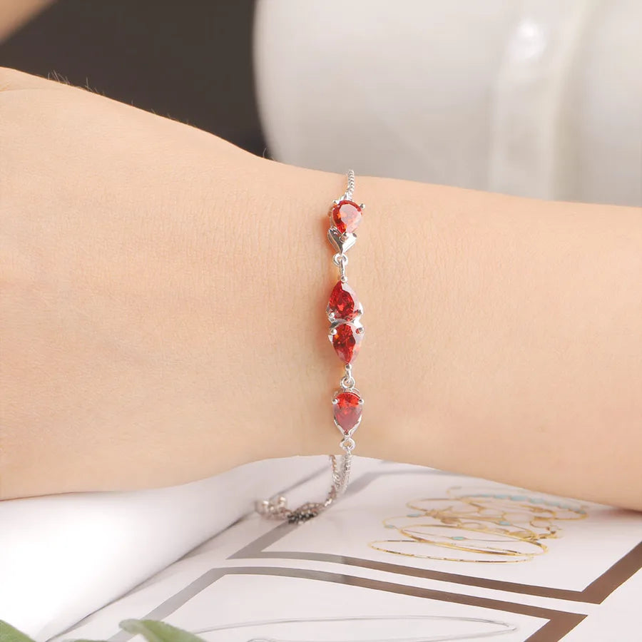 Elevate your jewelry collection with this elegant Garnet Teardrop Sterling Silver Bracelet. Crafted from high-quality 925 sterling silver and plated in white gold, this adjustable bangle features a stunning pear-shaped garnet centerpiece accented with sparkling zircon stones. Its delicate waterdrop design adds a romantic and feminine touch, making it perfect for everyday wear or special occasions. Lightweight and comfortable, this bracelet complements any outfit and suits all seasons. Whether you're treating yourself or gifting someone special, this timeless piece is sure to impress with its graceful charm and refined craftsmanship.