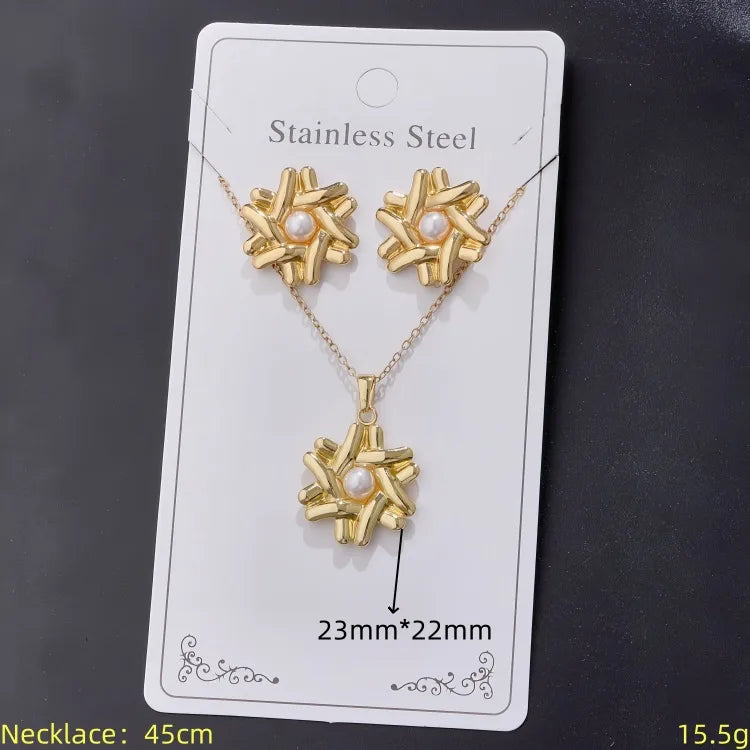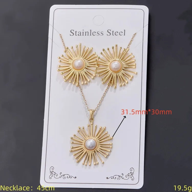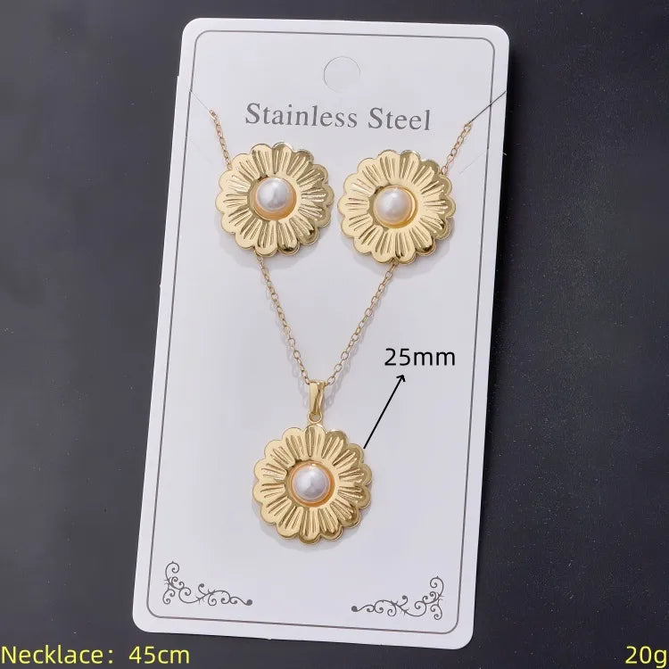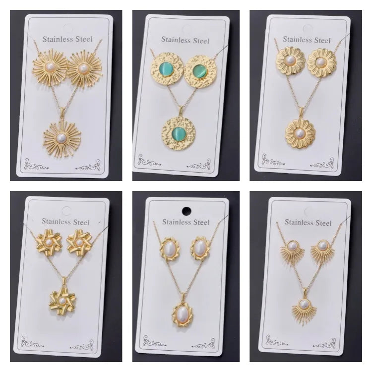 Elevate your everyday elegance with this stunning gold flower gemstone jewelry set. Designed for the modern woman, this set includes a matching necklace and earrings featuring intricate floral and geometric patterns. Crafted from durable 304 stainless steel and finished with 18K gold plating, it showcases artificial pearls and malachite accents for a luxurious touch. Whether you're heading out for a casual day, a selfie session, or a shopping trip, this jewelry set adds a refined sparkle to any outfit. Lightweight and versatile, it's perfect for all seasons and makes a thoughtful gift.