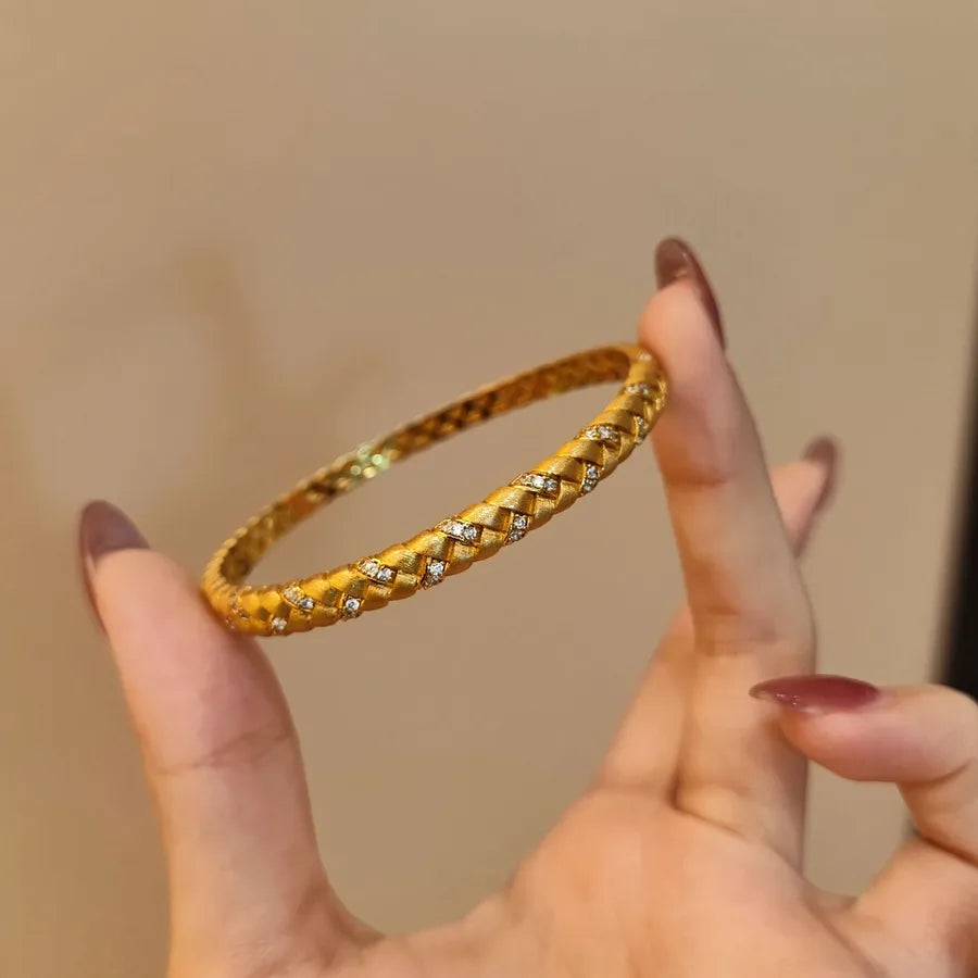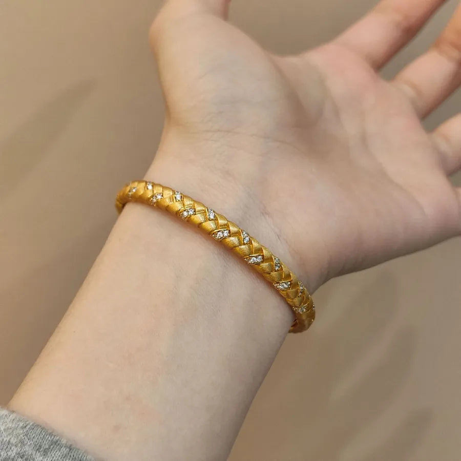 Elevate your accessory game with this elegant gold-plated bracelet crafted from genuine 925 sterling silver. Featuring a delicate wheat ear woven design and embedded zirconia accents, this lightweight piece combines Italian brushed craftsmanship with timeless sophistication. Its geometric pattern and sweet, elegant style make it a versatile addition to any jewelry collection. Whether worn alone or stacked, this bracelet adds a refined touch to both casual and formal outfits. Designed for comfort and durability, it’s perfect for everyday wear or special occasions. A must-have for jewelry lovers seeking beauty and quality in one piece.