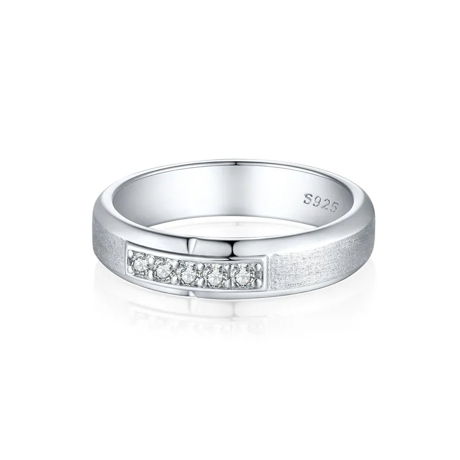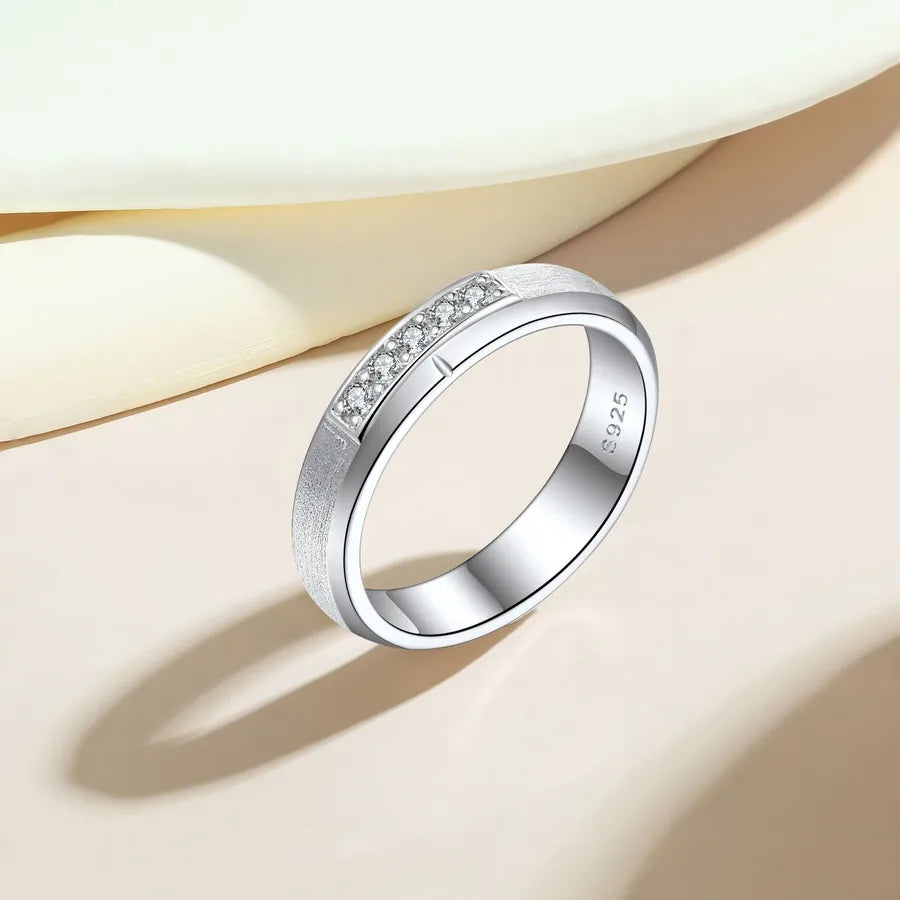 Men's 925 Silver Matte Geometric Ring with Zircon