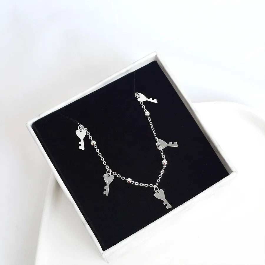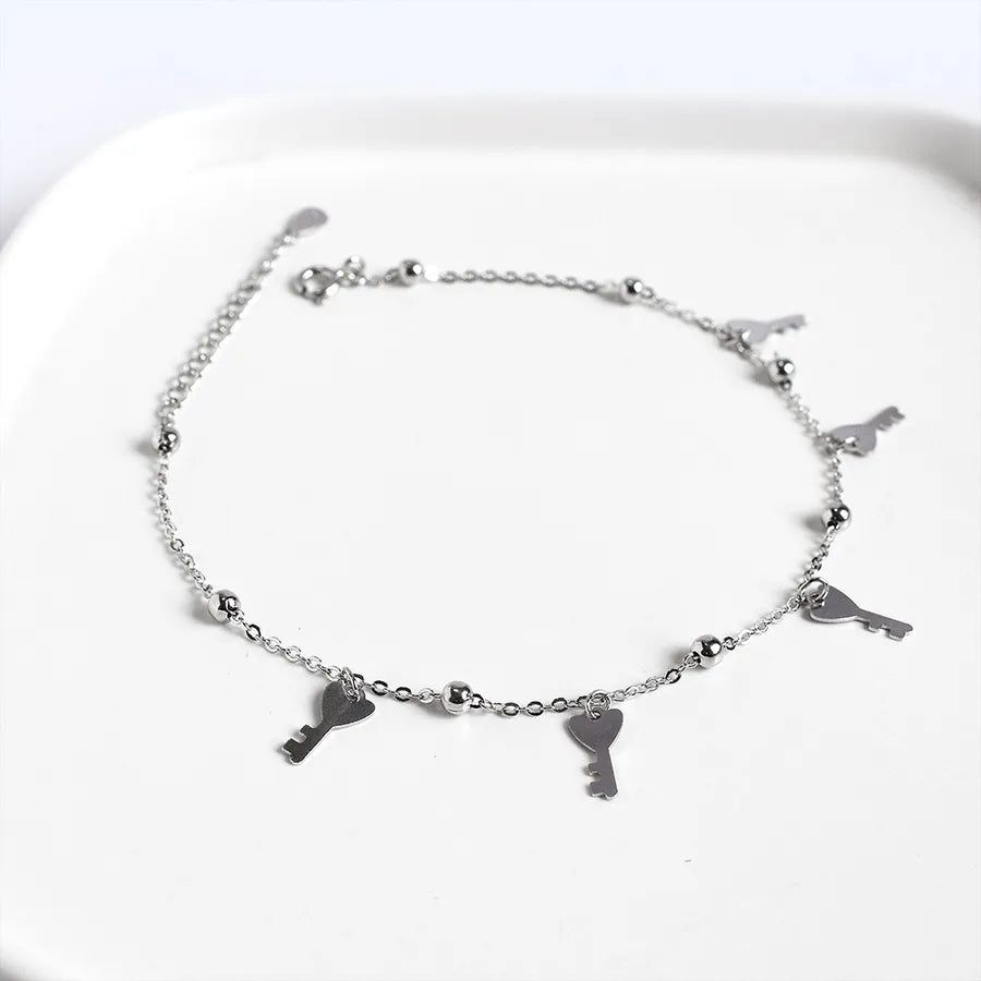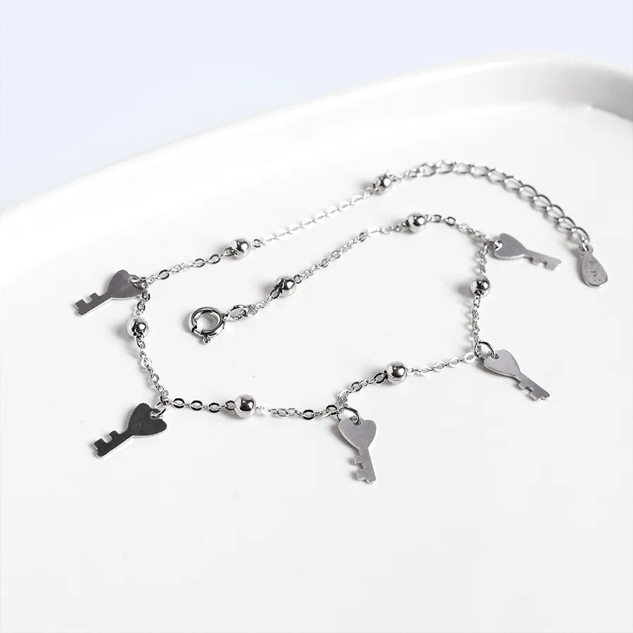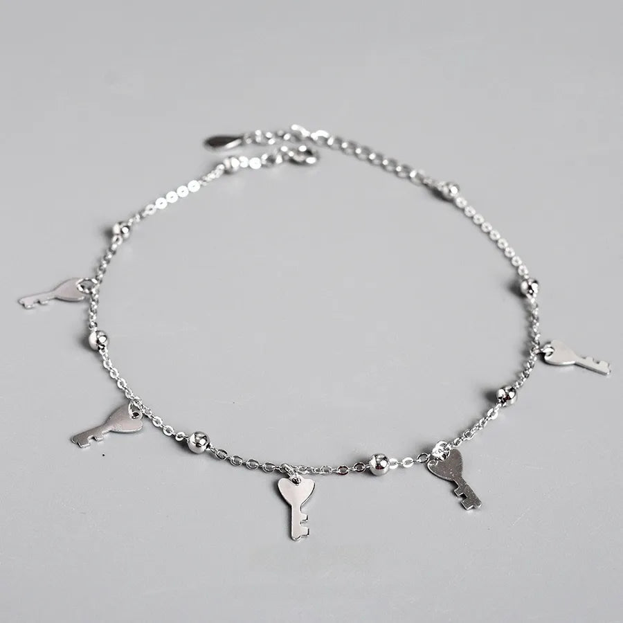 Elevate your summer style with this minimalist sterling silver key anklet, designed for women who appreciate simplicity and elegance. Crafted from premium S925 sterling silver and finished with a platinum electroplated coating, this anklet is both durable and stylish. Its geometric key charm adds a chic touch, making it perfect for beach days, outdoor events, or casual weddings. Lightweight at just 3g, it offers all-day comfort without compromising on fashion. Whether you're dressing up for a special occasion or adding flair to your everyday look, this anklet is a timeless accessory you'll love to wear.