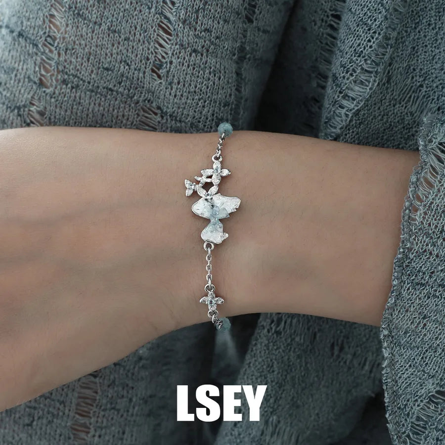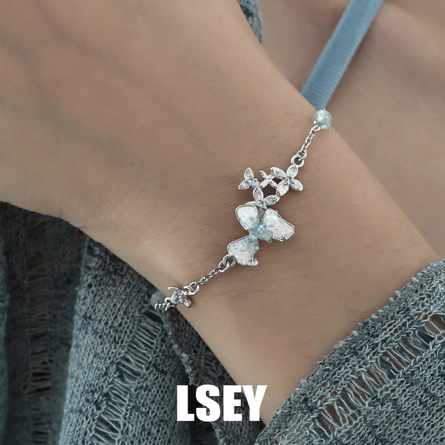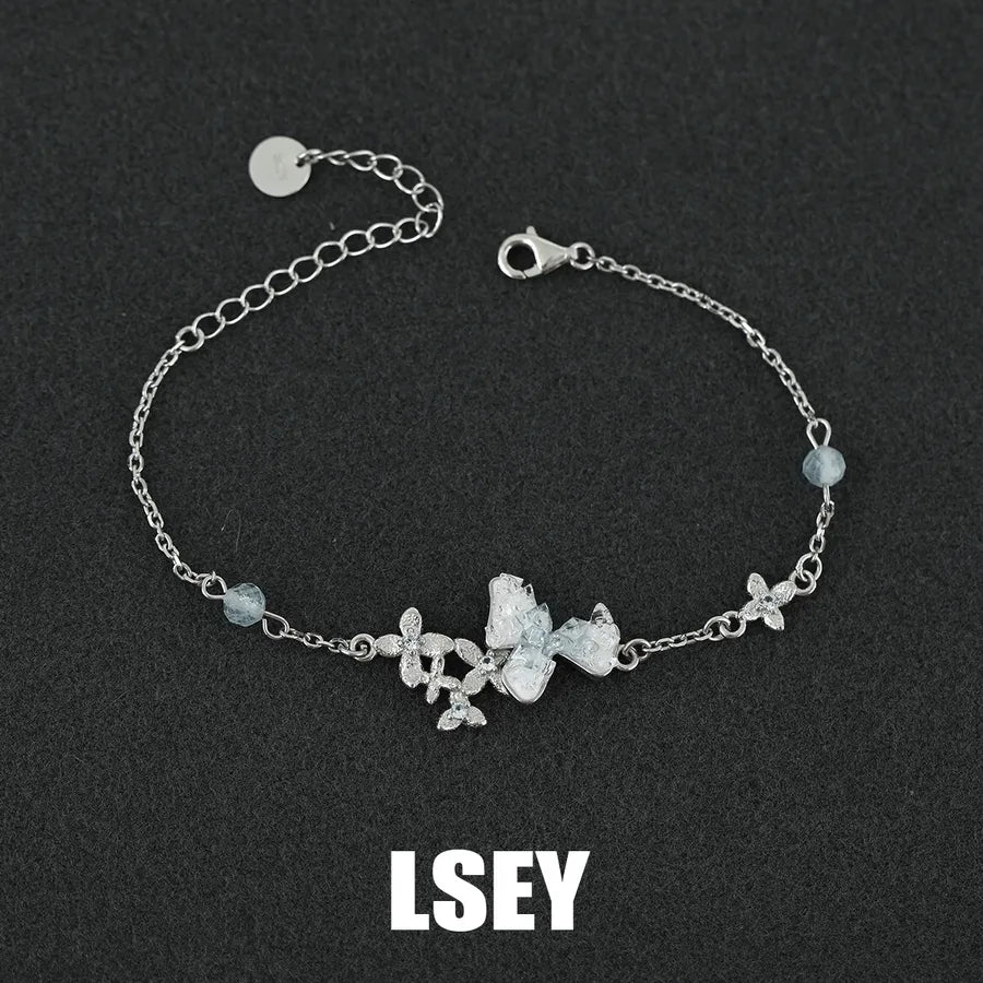 Delicate and enchanting, the Ice Blue Flower Sterling Silver Bracelet is a stunning piece of jewelry designed to elevate any outfit. Crafted from high-quality 925 sterling silver and plated in platinum, this bracelet features a miniature floral motif in a soft ice blue hue. Its elegant and sweet aesthetic makes it perfect for both business occasions and weekend outings. Lightweight and comfortable to wear, it adds a touch of fairytale charm to your wrist. Whether you're dressing up for a formal event or adding sparkle to your everyday look, this bracelet is a timeless accessory.