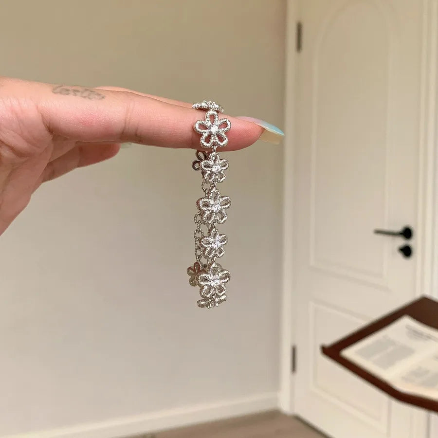 Elevate your accessory game with this S925 pure silver lace flower ring bracelet, designed for women who love a blend of elegance and bohemian charm. The intricate hollow lace flower design wraps delicately around your wrist and finger, creating a unique hand jewelry piece that’s both sweet and luxurious. Crafted with floral and petal motifs, this bracelet is lightweight at just 4g, making it perfect for all-day wear. Whether you're dressing up for a special occasion or adding flair to your everyday look, this bracelet adds a romantic and artistic touch to any outfit.