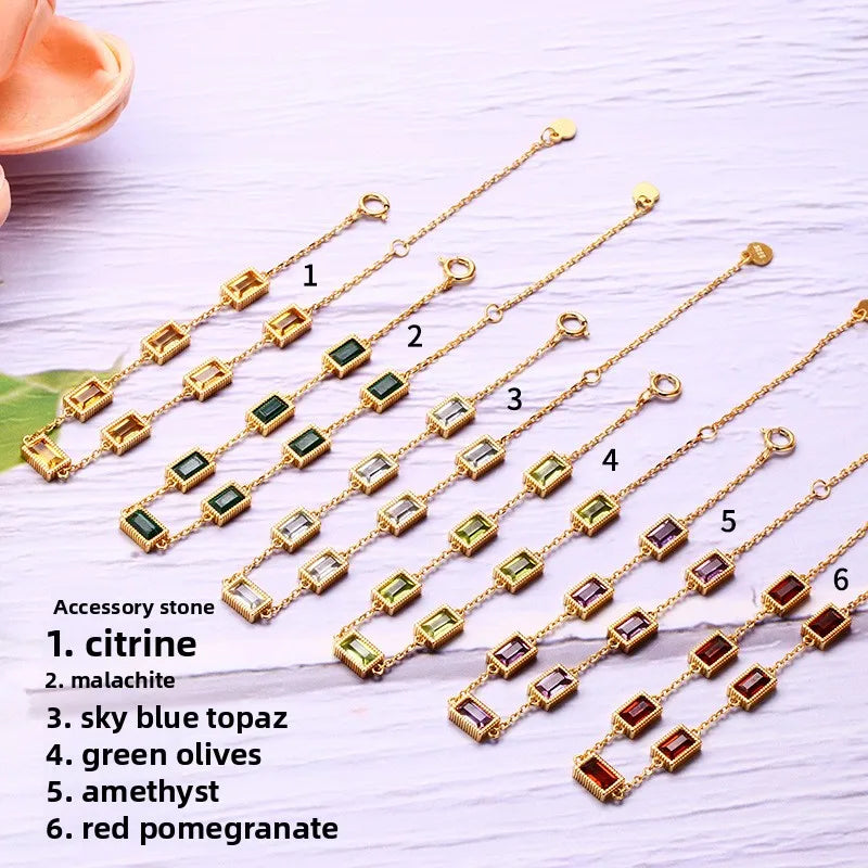 Elevate your everyday elegance with this S925 silver crystal bracelet, designed for women who appreciate refined simplicity. Featuring a geometric pattern and natural faceted crystals in dreamy candy colors like amethyst, olive, and topaz, this bracelet adds a pop of color and sparkle to any outfit. Crafted from 925 sterling silver and plated in 14K real gold using a durable PVD coating, it offers both beauty and longevity. Lightweight at just 3g, it’s perfect for daily wear or special occasions. A must-have accessory for those who love timeless, minimalist jewelry with a luxurious twist.