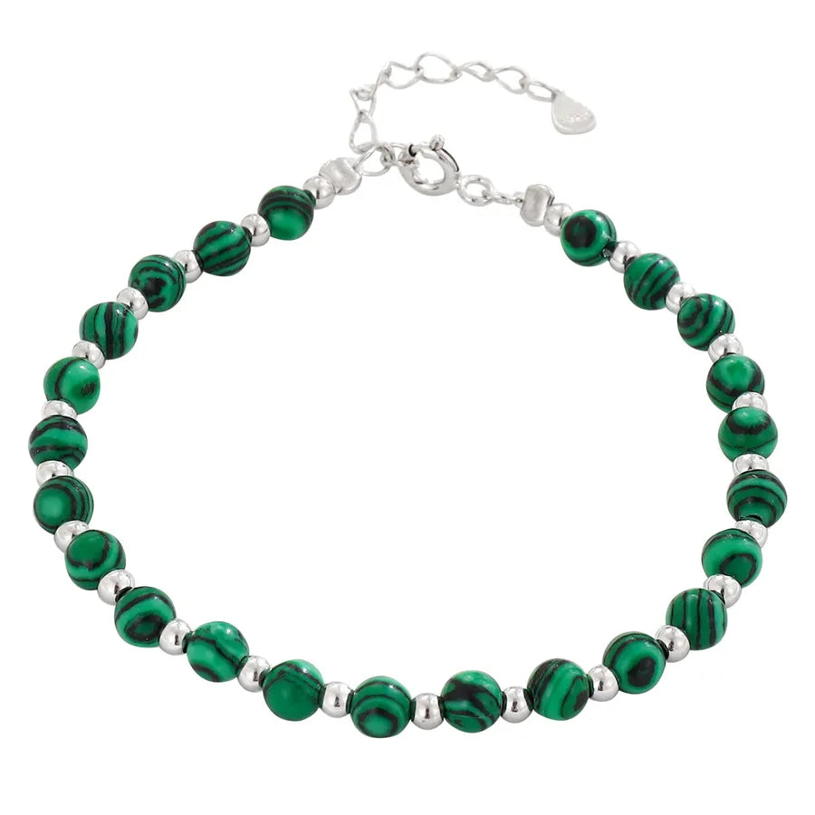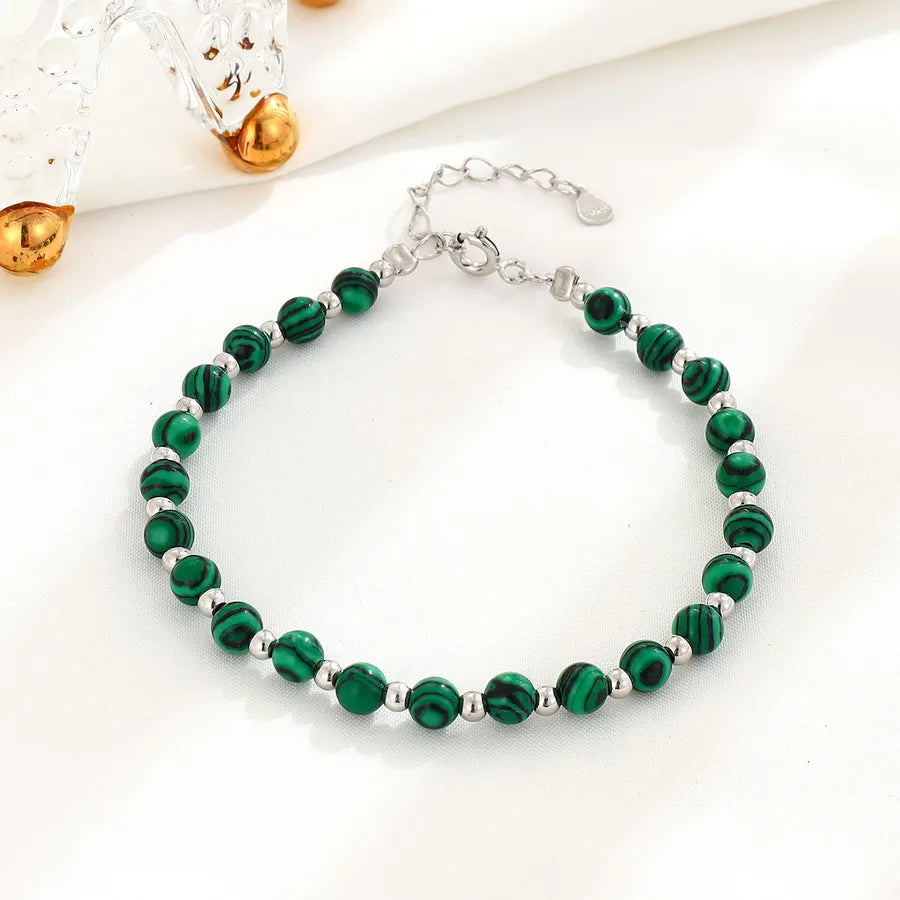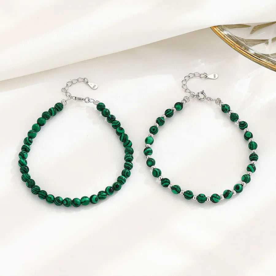 Elevate your everyday style with this elegant turquoise beaded bracelet crafted from genuine 925 sterling silver. Featuring 4mm malachite-inlaid turquoise beads in a geometric pattern, this lightweight accessory adds a refined pop of color to any outfit. Designed for women who appreciate minimalist luxury, it blends timeless charm with modern sophistication. Whether worn alone or layered in a bracelet stack, it’s perfect for casual outings or special occasions. The sweet and elegant design makes it a thoughtful gift or a personal treat. Add effortless beauty to your jewelry collection with this versatile piece.