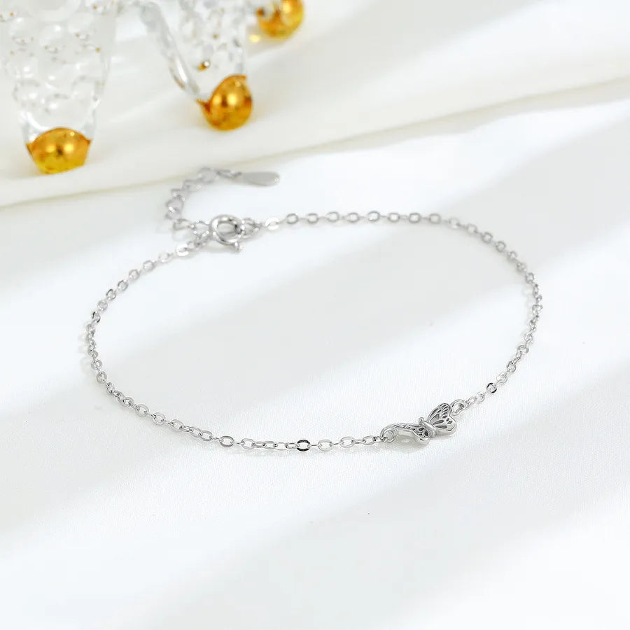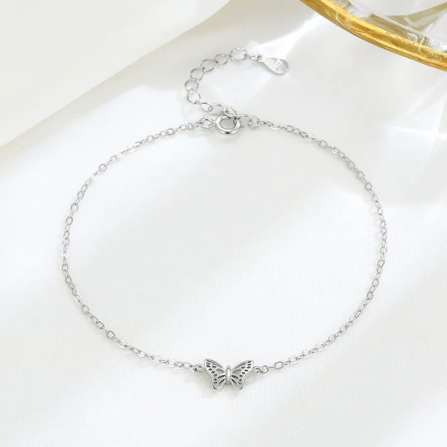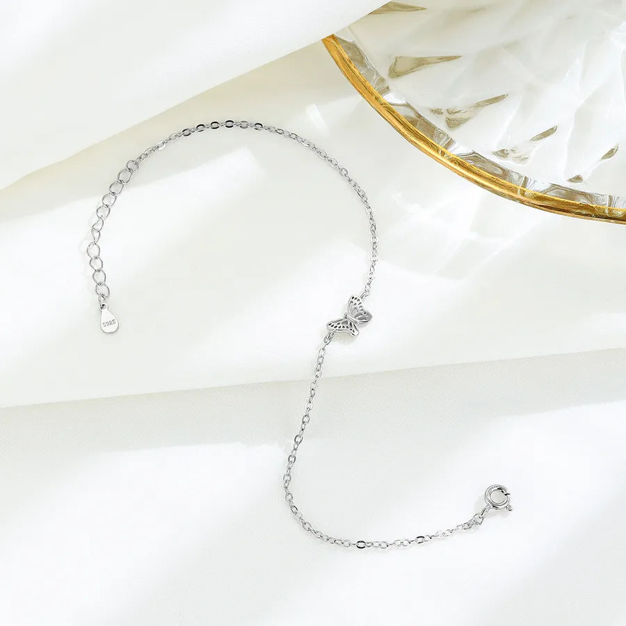 Elevate your summer style with this elegant sterling silver butterfly anklet, designed to add a delicate sparkle to your beachwear or casual outfits. Crafted from high-quality 925 sterling silver and platinum-plated for added shine and durability, this anklet features a geometric butterfly charm that brings a whimsical yet sophisticated touch. Lightweight and comfortable, it’s perfect for outdoor adventures, beach days, or simply showing off your unique personality. Whether you're dressing up for a summer party or adding flair to your everyday look, this anklet is a must-have accessory for fashion-forward women.
