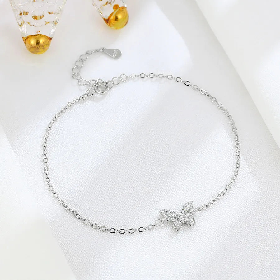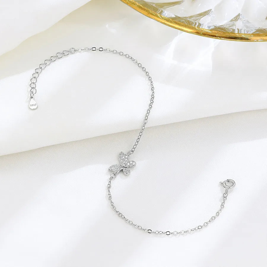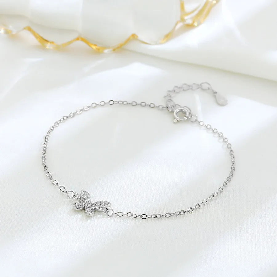 Sterling Silver Butterfly Anklet – Platinum Plated