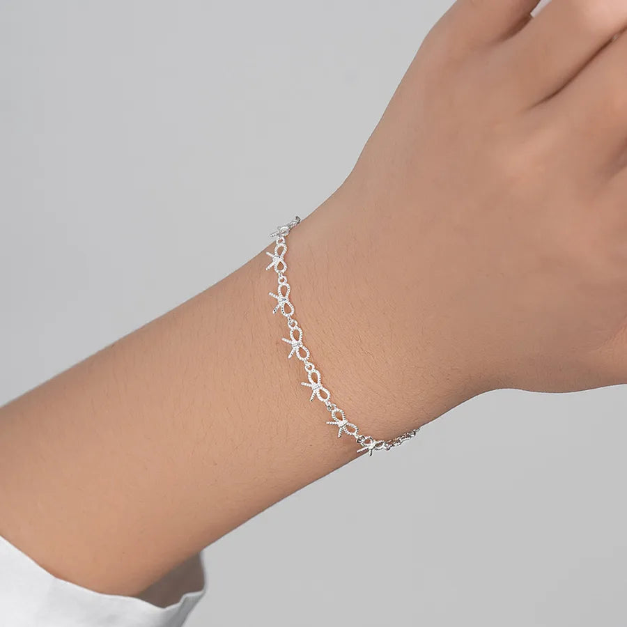 Elevate your everyday style with this minimalist sterling silver bracelet, designed with a delicate bow knot for a sweet, feminine touch. Crafted from premium 925 sterling silver and finished with a platinum-plated PVD coating, this lightweight 2g wristband is perfect for daily wear. Its simple yet trendy design makes it a versatile accessory that complements any outfit, from casual to chic. Whether you're heading to work, brunch, or a night out, this bracelet adds a subtle sparkle to your wrist. A must-have piece for jewelry lovers who appreciate elegance and modern fashion.
