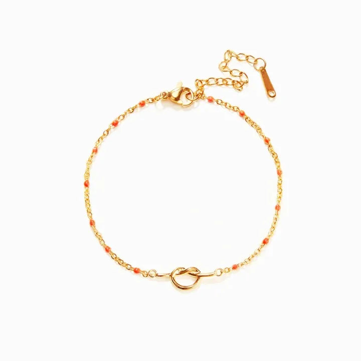 Elevate your accessory game with this elegant sterling silver bracelet, featuring a modern geometric knot design and vibrant enamel detailing. Crafted from high-quality 925 sterling silver and finished with a durable PVD coating, this bracelet combines timeless charm with contemporary style. Lightweight and comfortable, it’s perfect for weekend outings or formal banquets. The secure winding knot buckle adds a unique touch, making it a standout piece in any jewelry collection. Whether worn solo or stacked with other favorites, this bracelet brings effortless sophistication to your look. A must-have for fashion-forward women who love refined accessories.