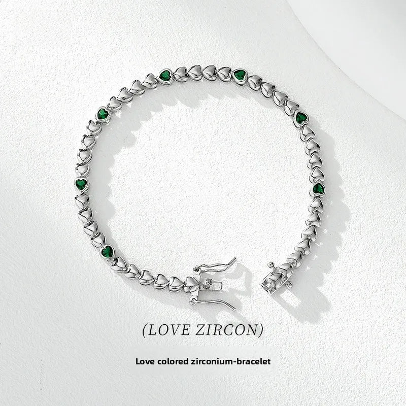 Elevate your everyday look with this elegant heart-shaped tennis bracelet crafted from genuine 925 sterling silver. Adorned with vibrant, colorful zircon stones, this bracelet blends timeless charm with a modern twist. Its unisex design makes it a versatile accessory for anyone who appreciates fine jewelry. Lightweight yet eye-catching, it pairs beautifully with both casual and formal outfits. Whether you're treating yourself or gifting someone special, this bracelet is a stylish expression of love and individuality. Designed for daily wear, it offers both comfort and durability without compromising on sophistication or sparkle.