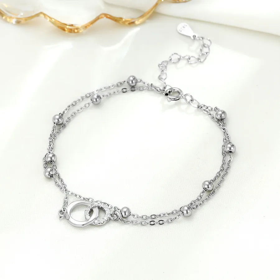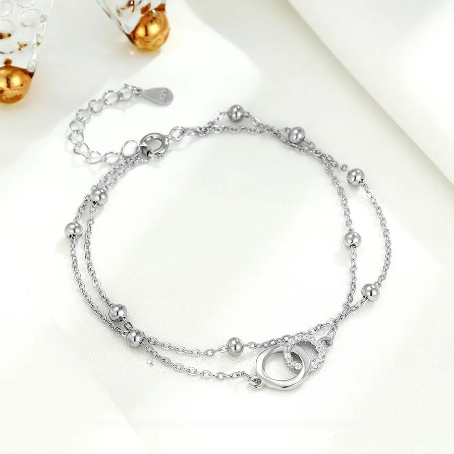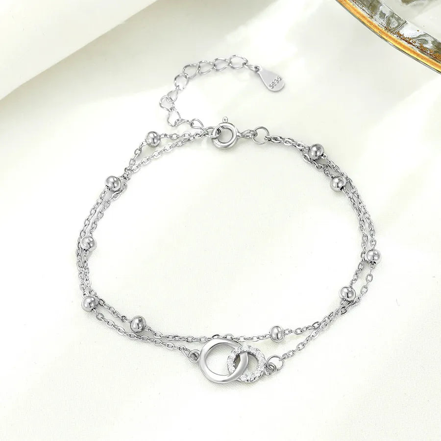 Elevate your everyday elegance with this Sterling Silver Mobius Double Layer Bracelet. Crafted from genuine 925 sterling silver, this bracelet features a unique geometric Mobius design paired with delicate bead accents. Its minimalist yet sophisticated style makes it perfect for both casual wear and special occasions. Lightweight and comfortable, it adds a subtle shine to any outfit. Designed for women who appreciate timeless elegance and modern simplicity, this bracelet is a versatile accessory that complements any jewelry collection. Whether worn alone or stacked, it brings a refined touch to your wrist with effortless charm.