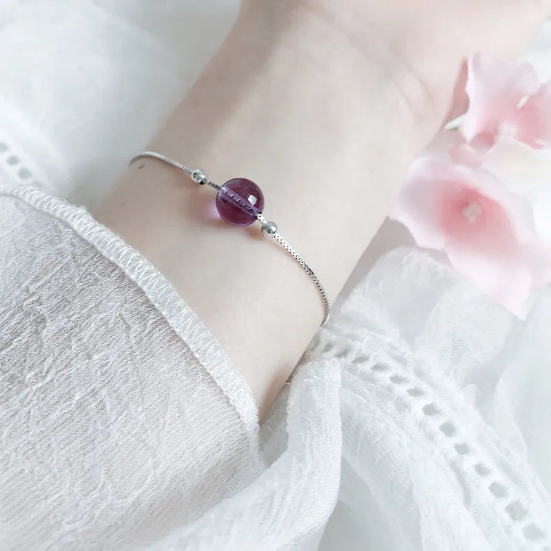 Elevate your accessory game with this elegant sterling silver bracelet featuring a striking purple crystal centerpiece. Designed with a modern geometric pattern, this bracelet blends timeless elegance with contemporary style. Perfect for students and fashion-forward women alike, it adds a touch of sparkle to any outfit—whether you're heading to a weekend brunch or a formal banquet. Crafted from high-quality 925 sterling silver, it offers lasting shine and durability. Lightweight and comfortable to wear all day, this bracelet is a must-have addition to your jewelry collection. Make a subtle yet sophisticated statement with every wear.