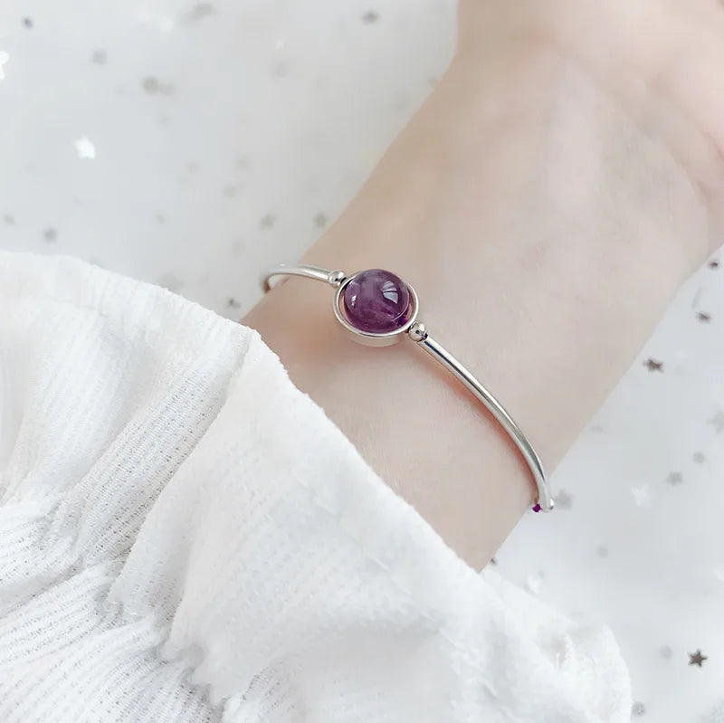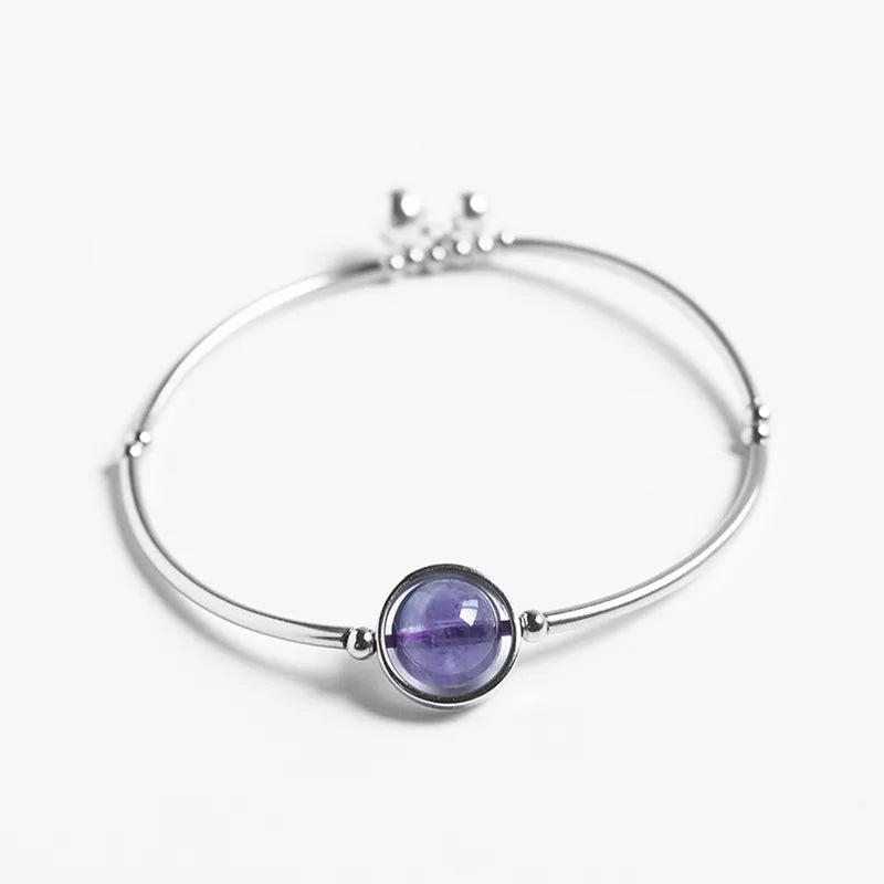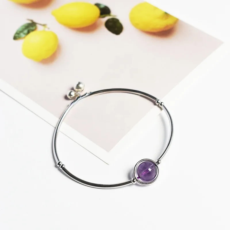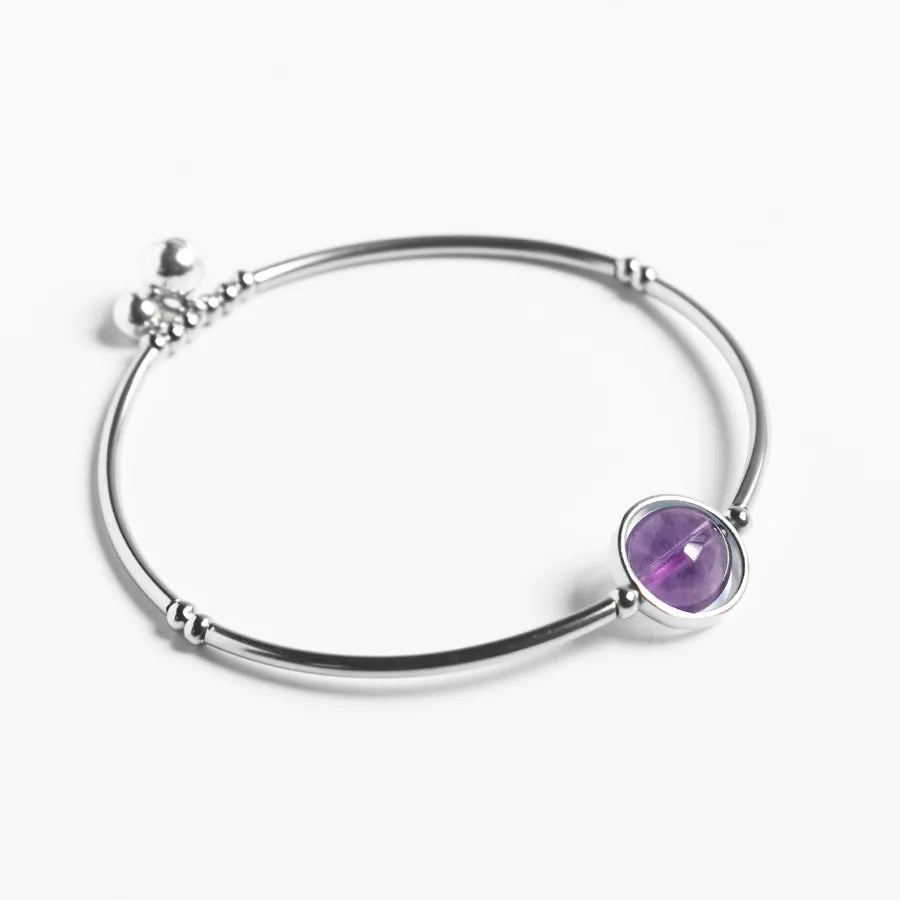 Elevate your accessory game with this elegant sterling silver bracelet featuring a stunning purple quartz centerpiece and delicate bell charm. Crafted from high-quality 925 sterling silver and platinum plating, this bracelet combines timeless beauty with a modern geometric design. The soft chime of the bell adds a whimsical touch, making it perfect for both everyday wear and special occasions. Lightweight and comfortable, it’s an ideal gift for someone special or a treat for yourself. Whether styled solo or stacked, this bracelet brings a sweet, feminine charm to any outfit with its graceful elegance and sparkle.